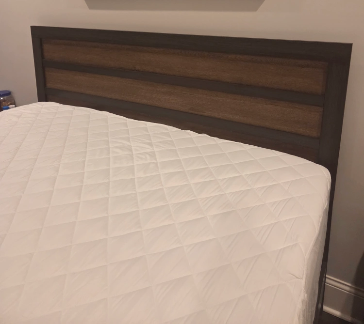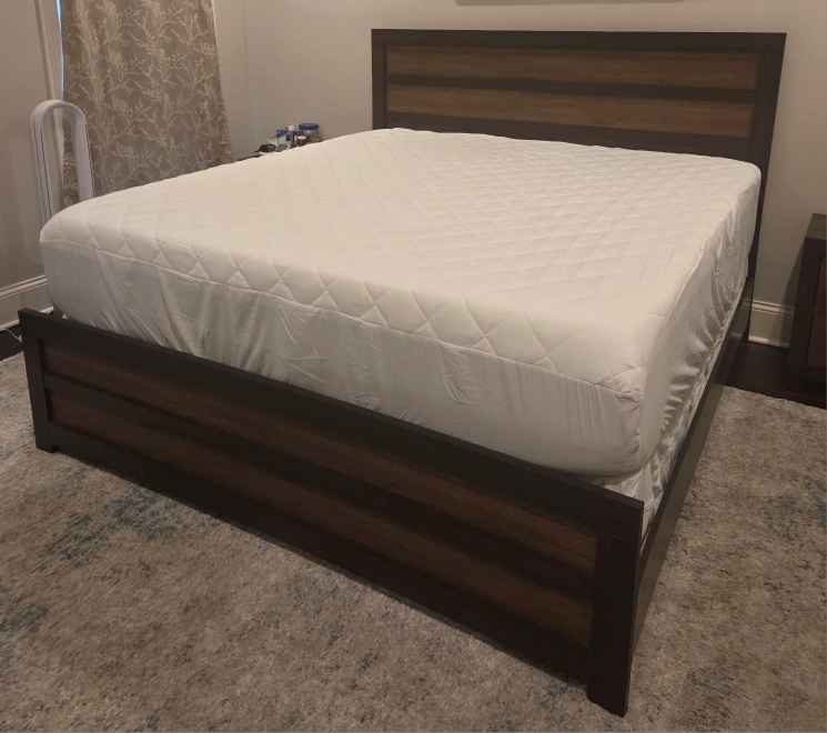 King size bed, headboard, footboard, and frame. You must disassemble and move. 2 people will be needed to move the bed pieces. There are 7 stairs into the condo and 6 stairs into the bedroom.