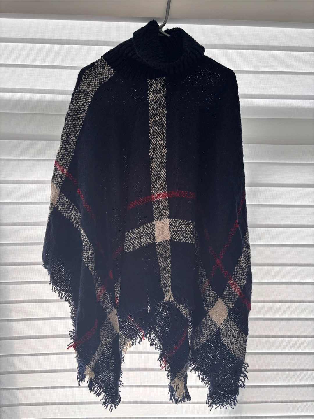 Cozy up with this stylish Plaid Poncho! It has a classic plaid pattern with a turtleneck design, great for adding warmth and style to your outfits.