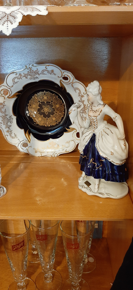 Keramos Figurine & Echt Weimar Kobalt Plate