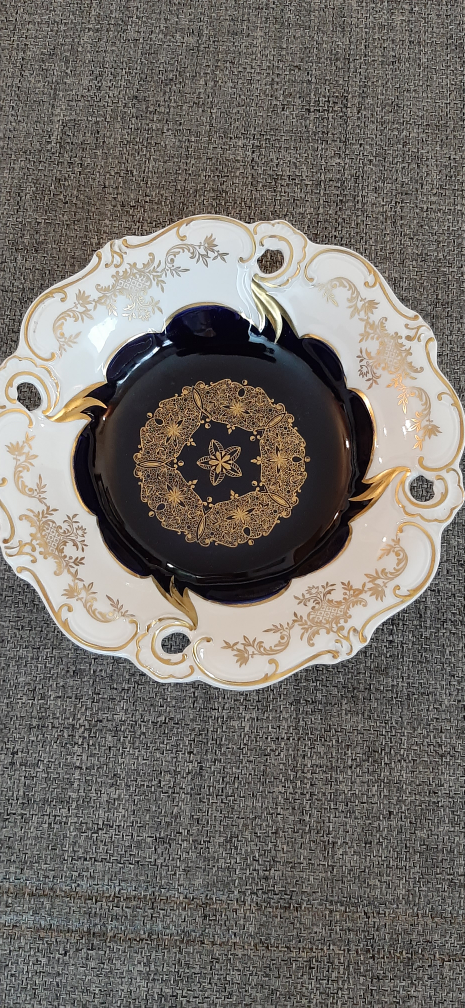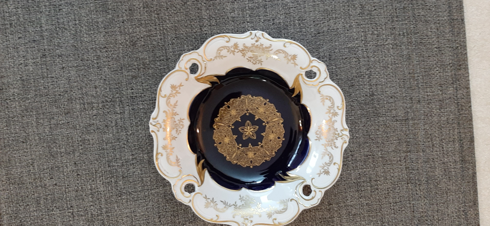 Vintage Echt Weimar Kobalt Cobalt Blue Gold Swag Bowl Dish 12" Cut Out Rims$30.
