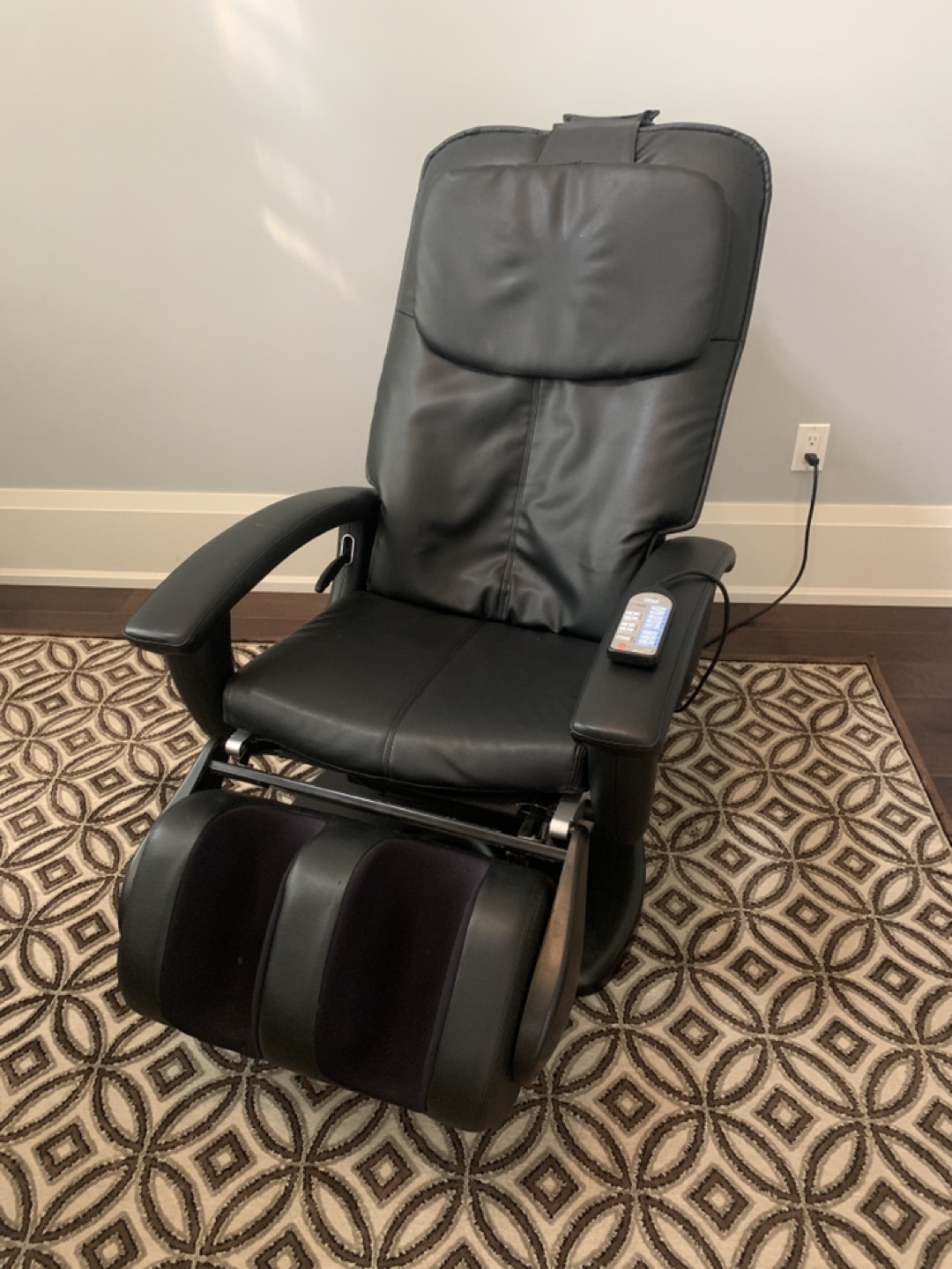 Selling a comfortable black massage recliner chair! It looks to be in good condition and ready to help you relax after a long day. Perfect for a home theatre or living room