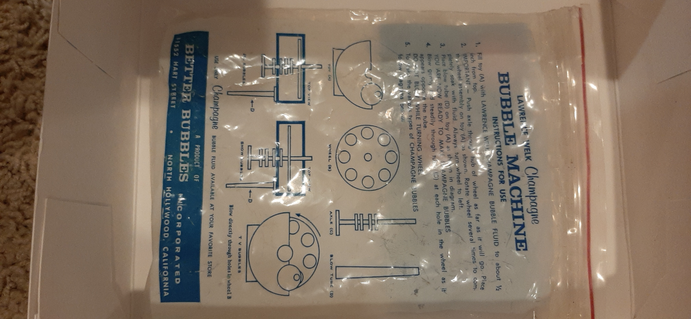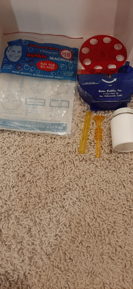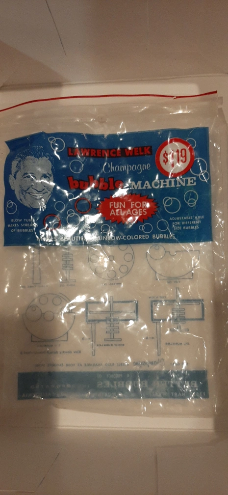 Selling a Vintage Lawrence Welk Champagne Bubble Machine! It's fun for all ages and makes beautiful rainbow-colored bubbles. It comes with all the parts in the original packaging.