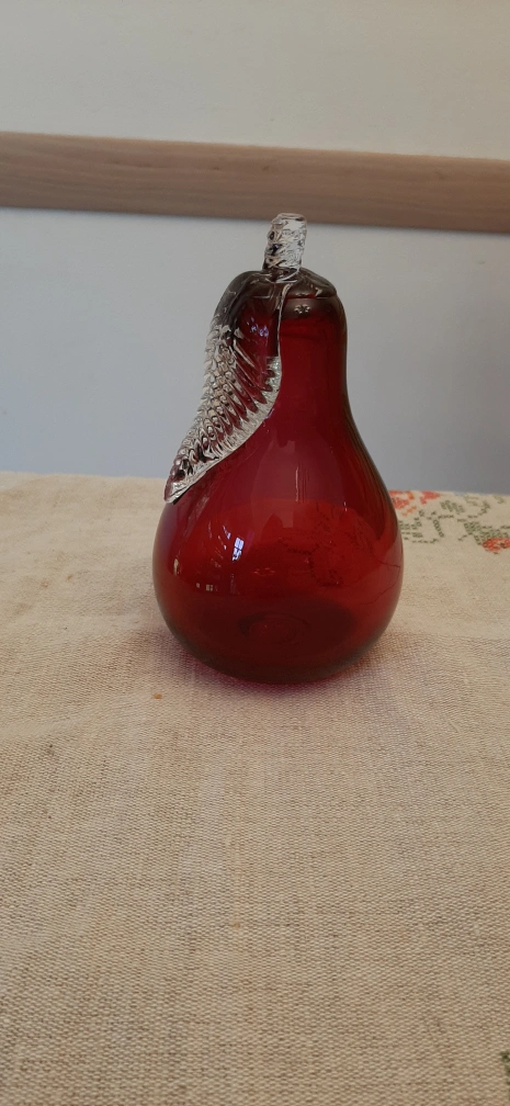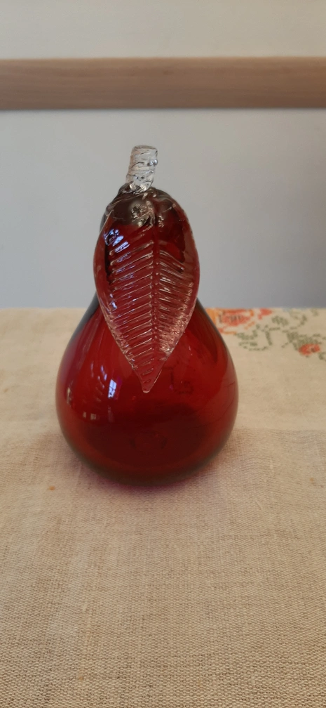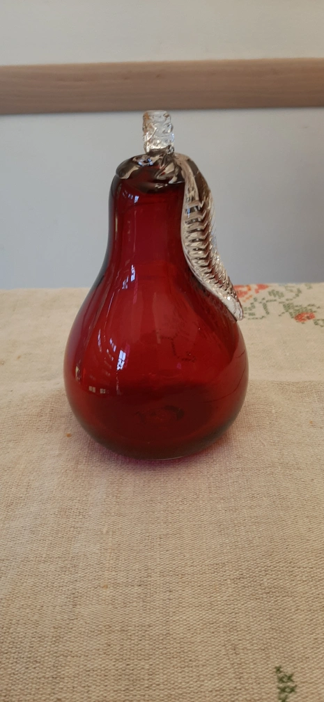 Vintage Canadian Rossi Art Glass Red Pear Home Decor Paperweight Handmade Approx 4 1/2" tall x 3" width. There is a R stamped in the bottom. The "R" stamp is partially chipped.