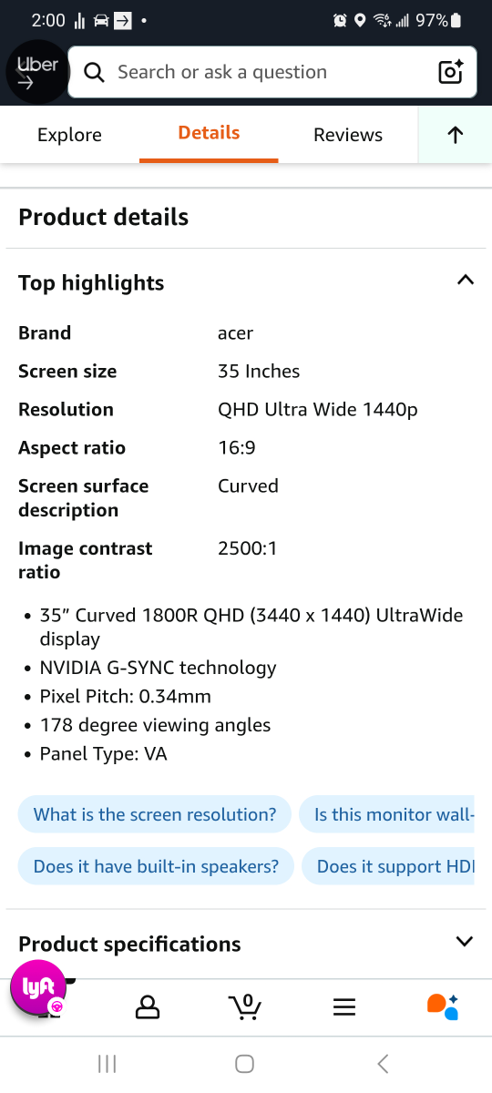 Selling an Acer 35-inch curved monitor in great condition! It features: