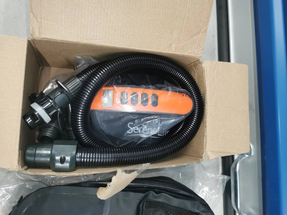Comes with the hose and attachments for almost all water sports inflateables (Paddleboard, Kayak, Boats, Rubber Rings etc)