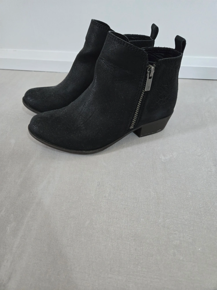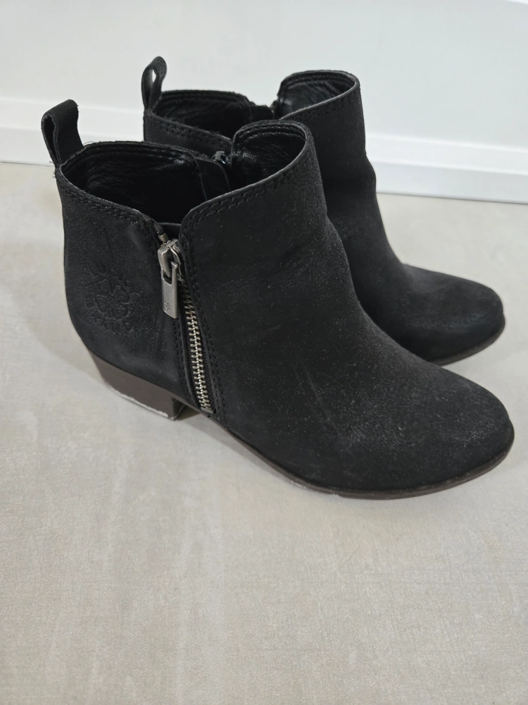 Selling a pair of Lucky Brand black ankle boots in kids size 1. They have a side zipper and a low heel. These boots are in great condition and would be a great addition to your kids wardrobe!