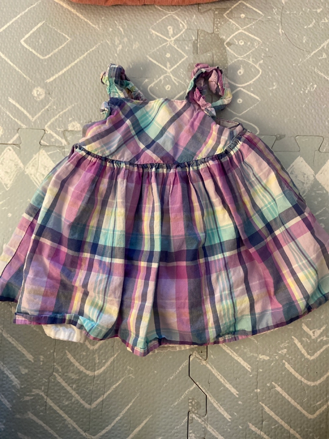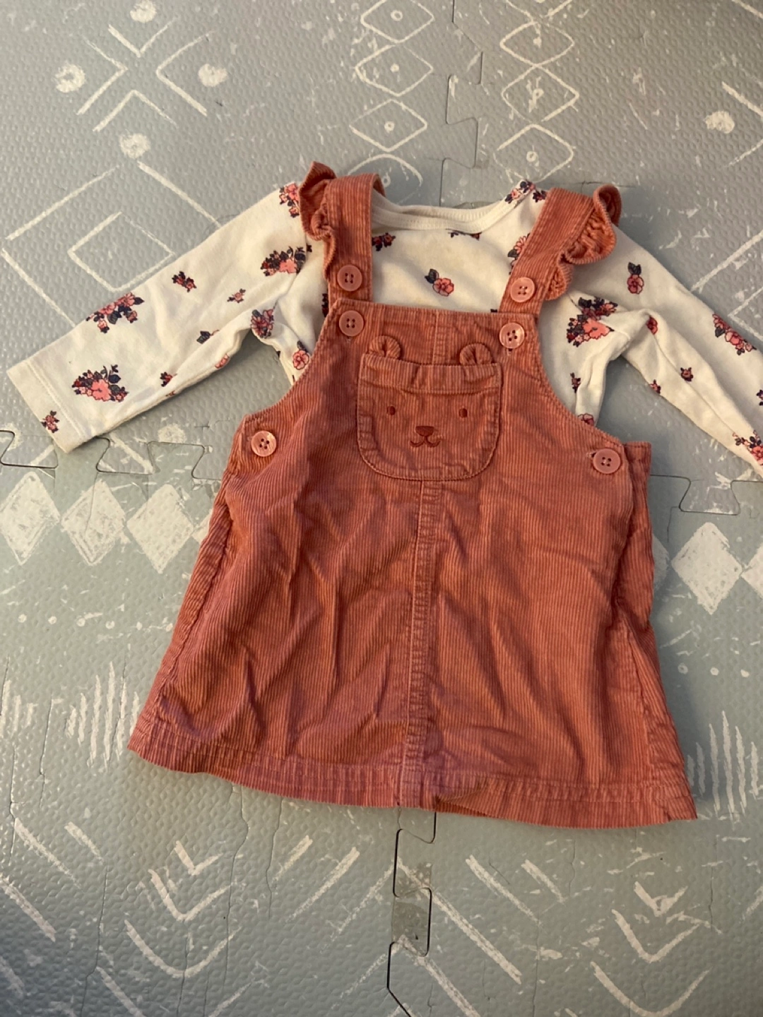 A cute OshKosh denim overalls dress with a floral skirt, other Carters, brand clothes.