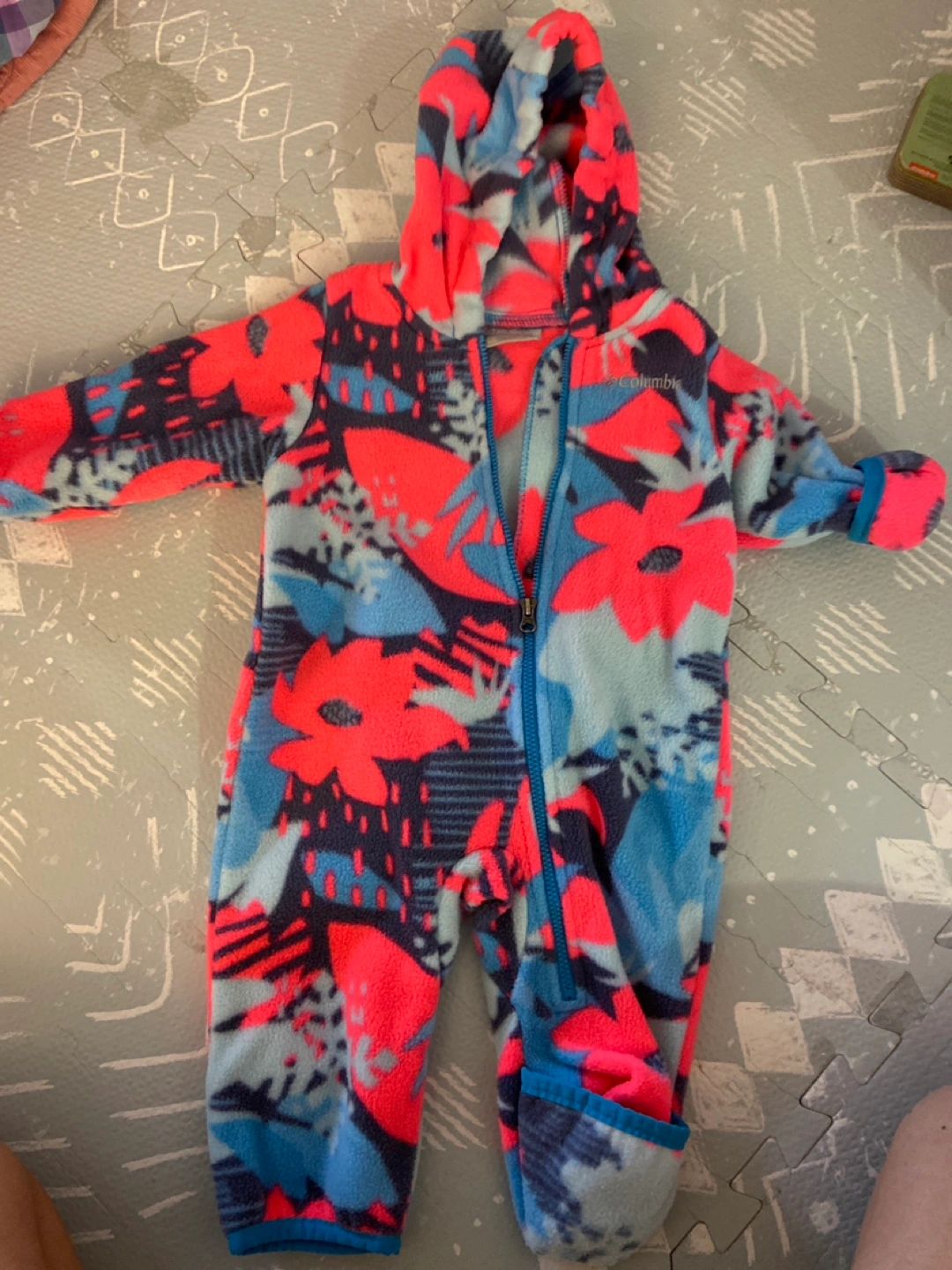 Cozy Columbia fleece jumpsuit with a fun floral pattern! Perfect for keeping your little one warm and comfy. It's in great condition and ready for a new home