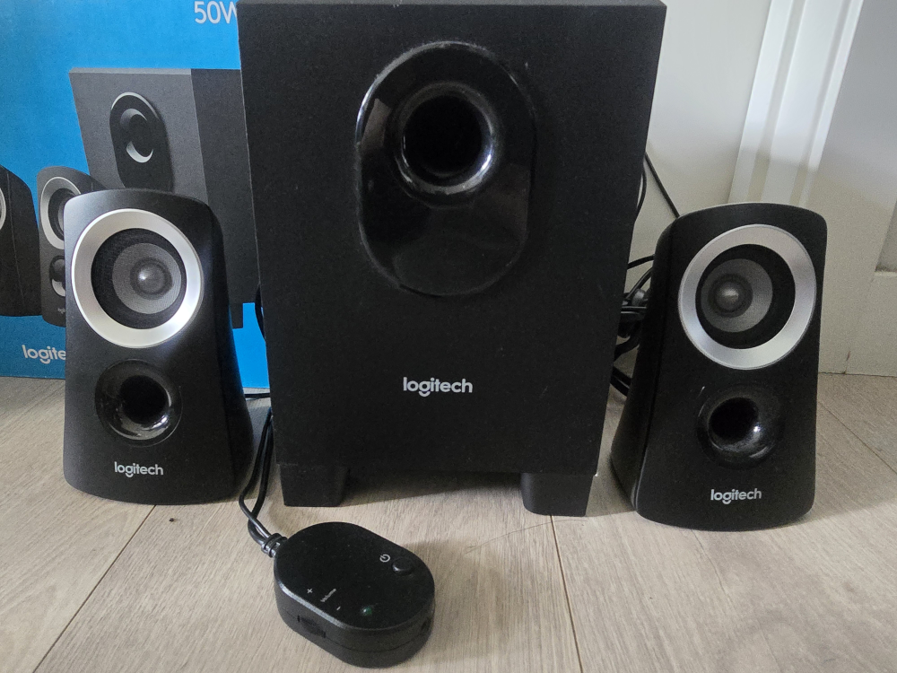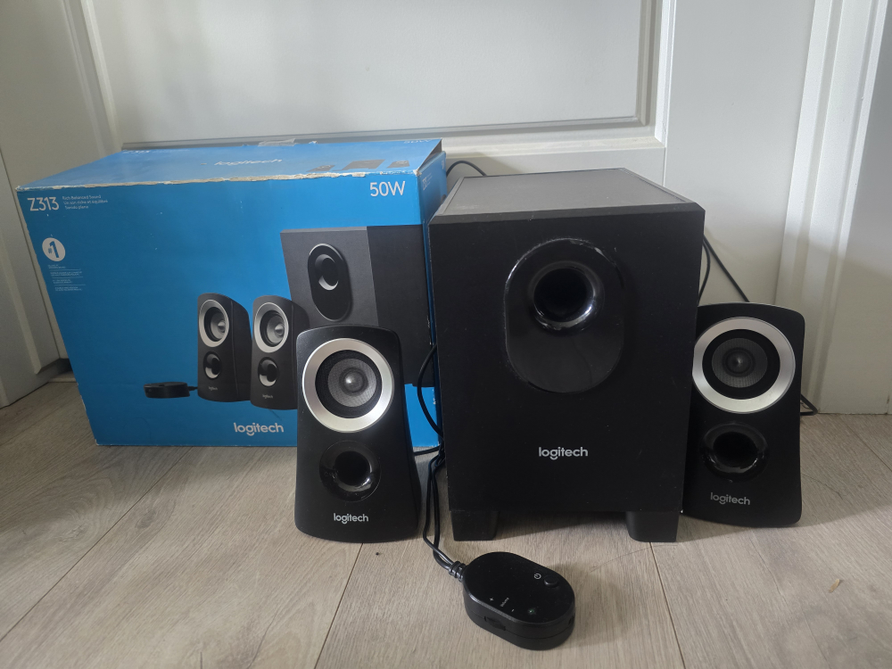 Selling a Logitech Z313 speaker system with a subwoofer! It delivers rich, balanced sound and is super easy to set up. Comes with the original box and all components. Originally bought for $94.99