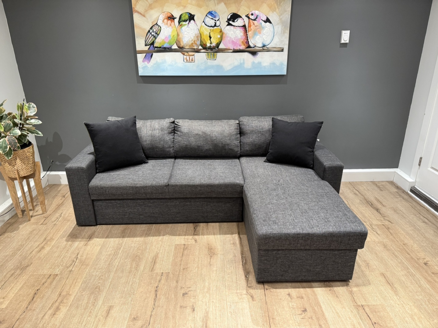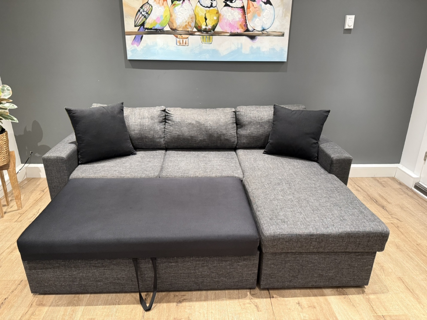 Maximize both comfort and functionality with this dark grey sofa bed sectional – perfect for small spaces, guest rooms, or modern living areas. Only 9 months old and in like-new condition.