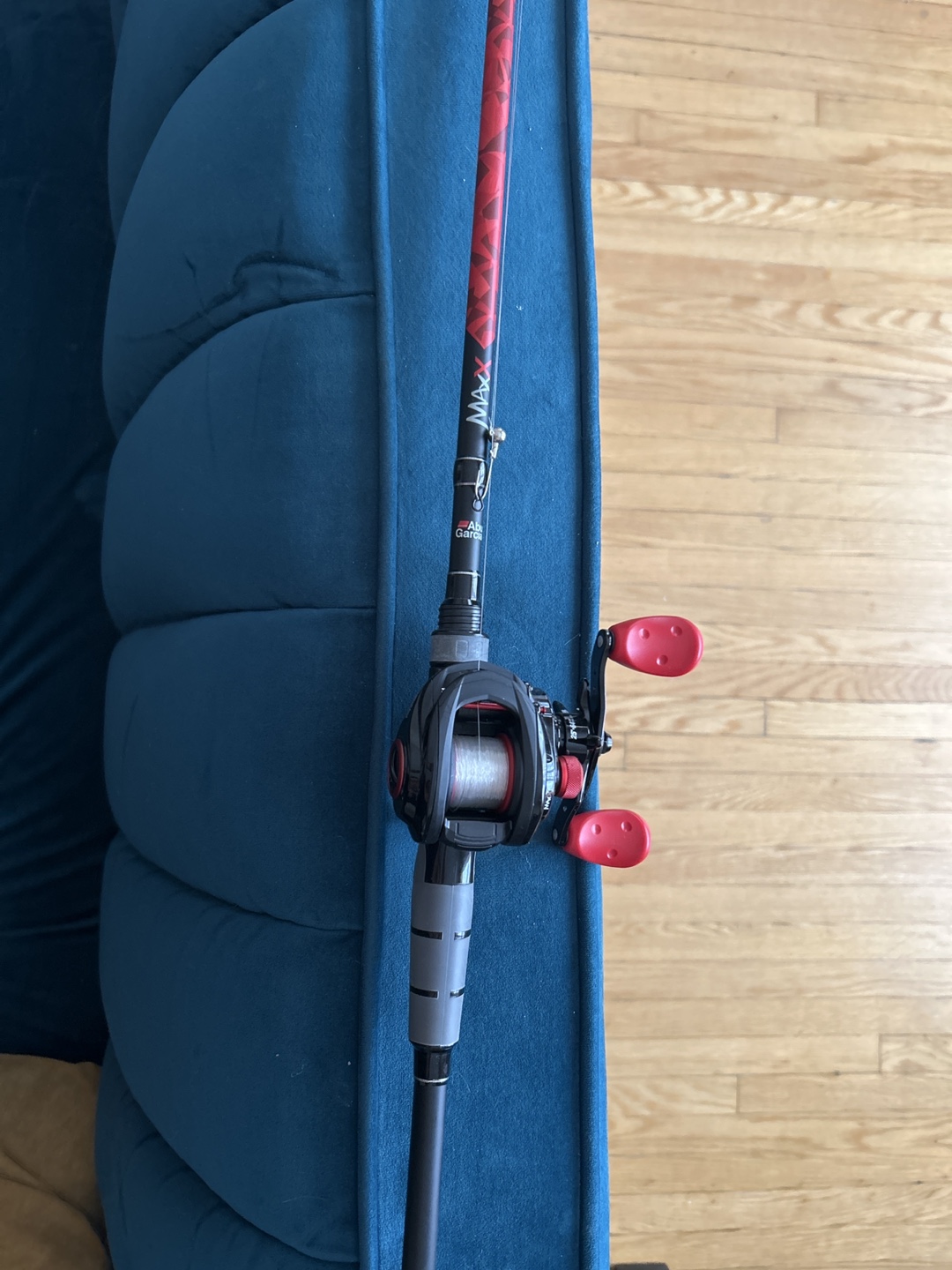 Selling an Abu Garcia Max X baitcast combo. This reel is Swedish engineered, graphite construction for a lightweight and balanced design. The reel has a smooth action and the rod is sensitive enough to feel even the lightest bites. Perfect for bass fishing or other freshwater species. It's in excellent shape and ready for your next fishing trip!