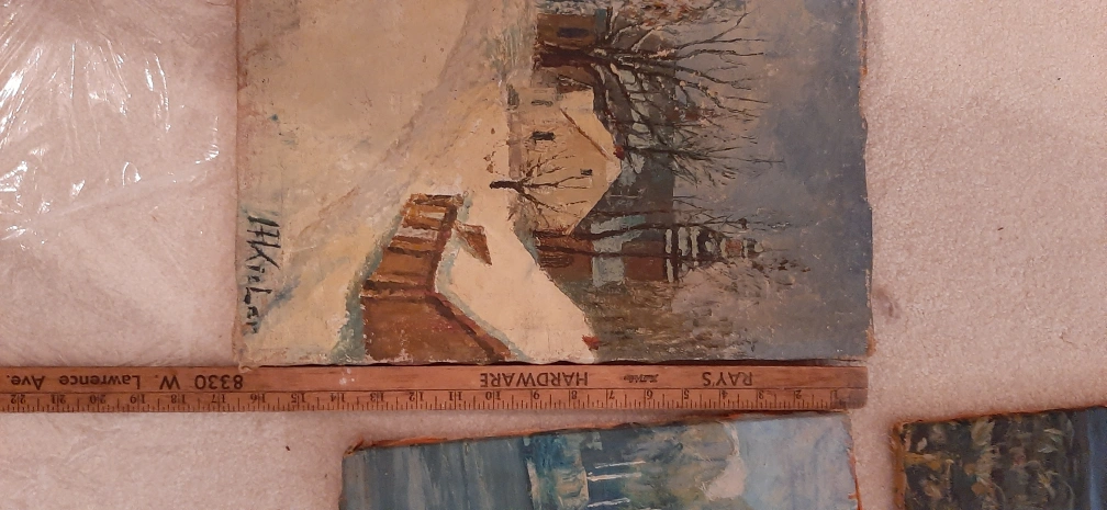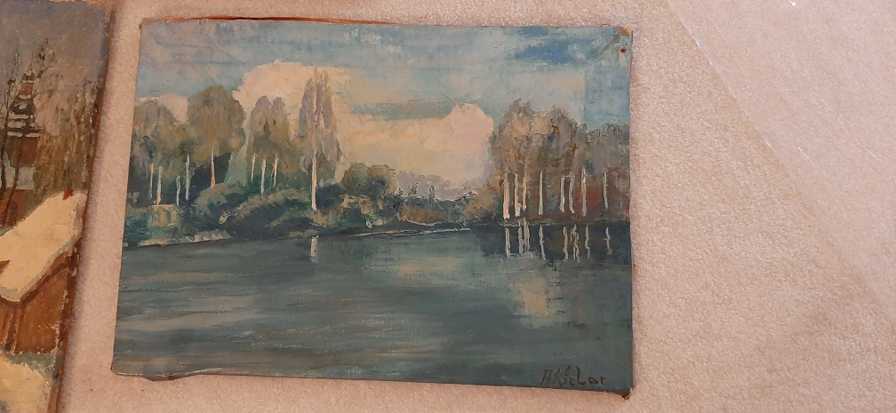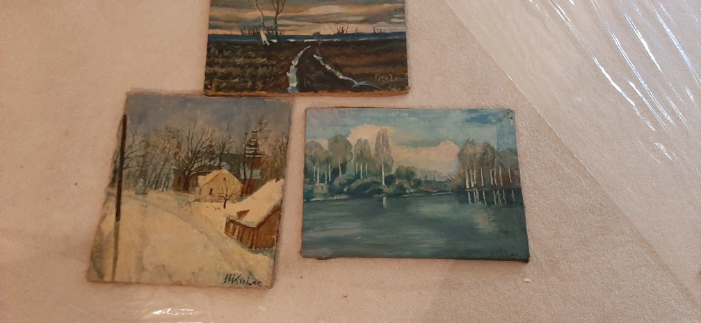 Selling a set of original landscape oil paintings. (1940's)They depict various scenes, including winter landscapes and waterscapes. Each painting is signed by the artist, A. Kielar.