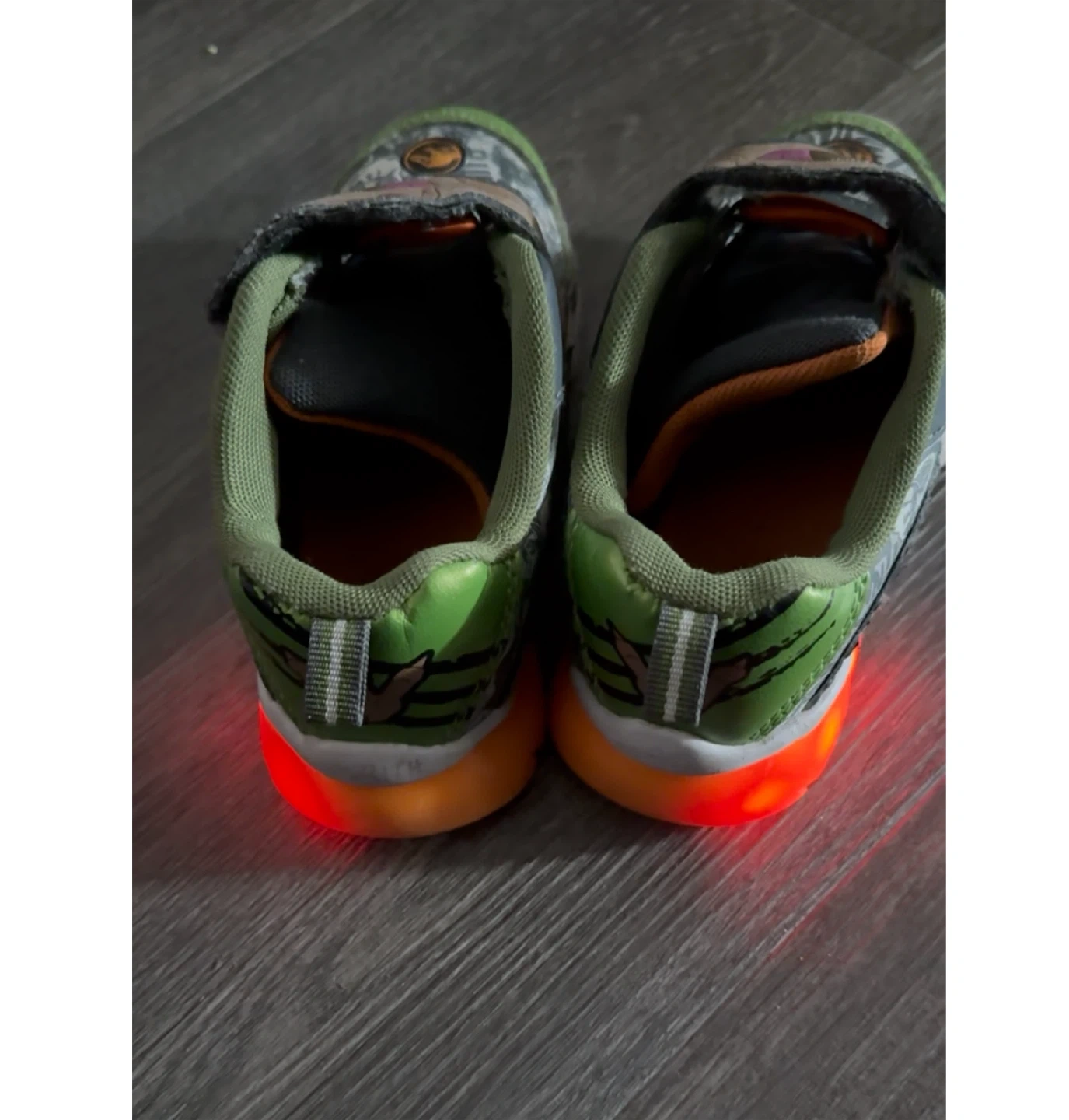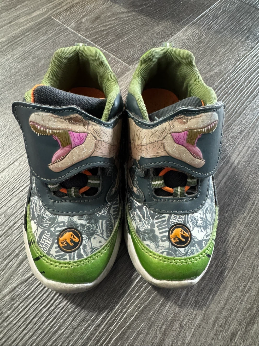 These Jurassic World light-up shoes are in great condition and ready for a new home! They're a size 10 and feature a fun dinosaur design. Perfect for any little Jurassic Park fan!