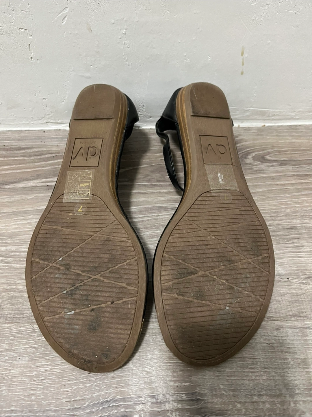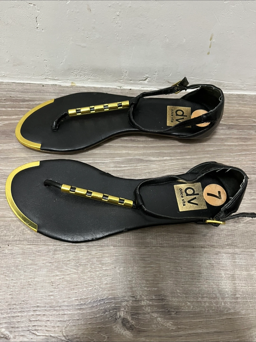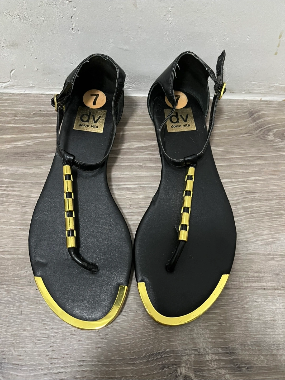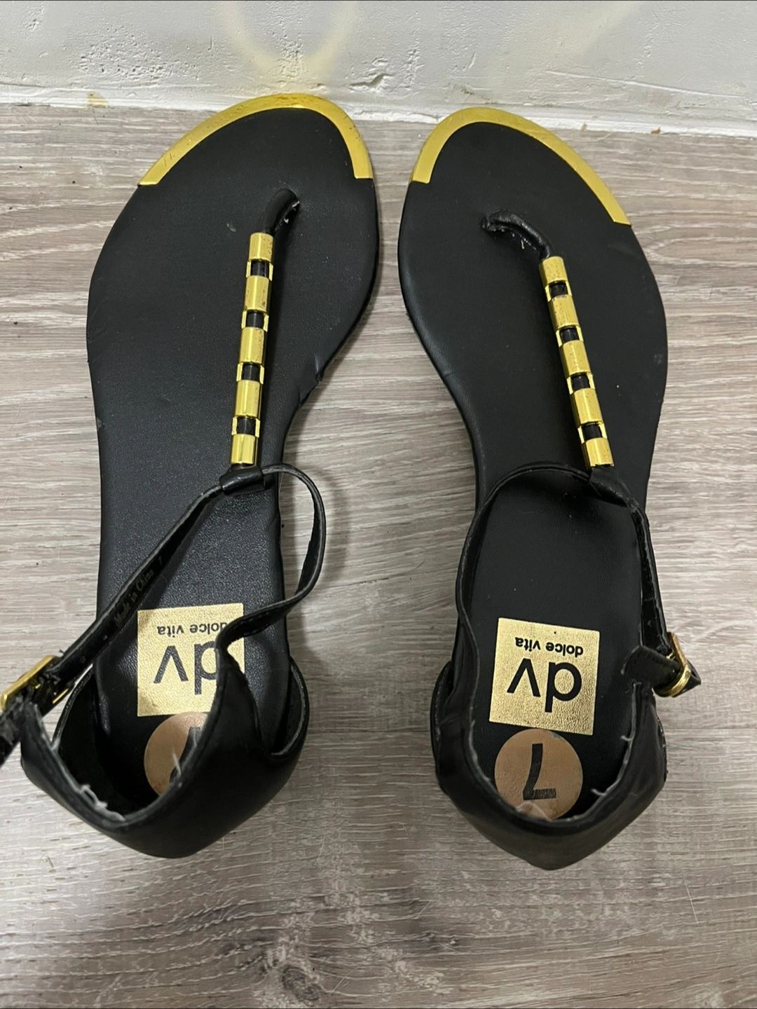 Dolce Vita sandals in size 7. Black with gold accents and have a T-strap design. Gently used.