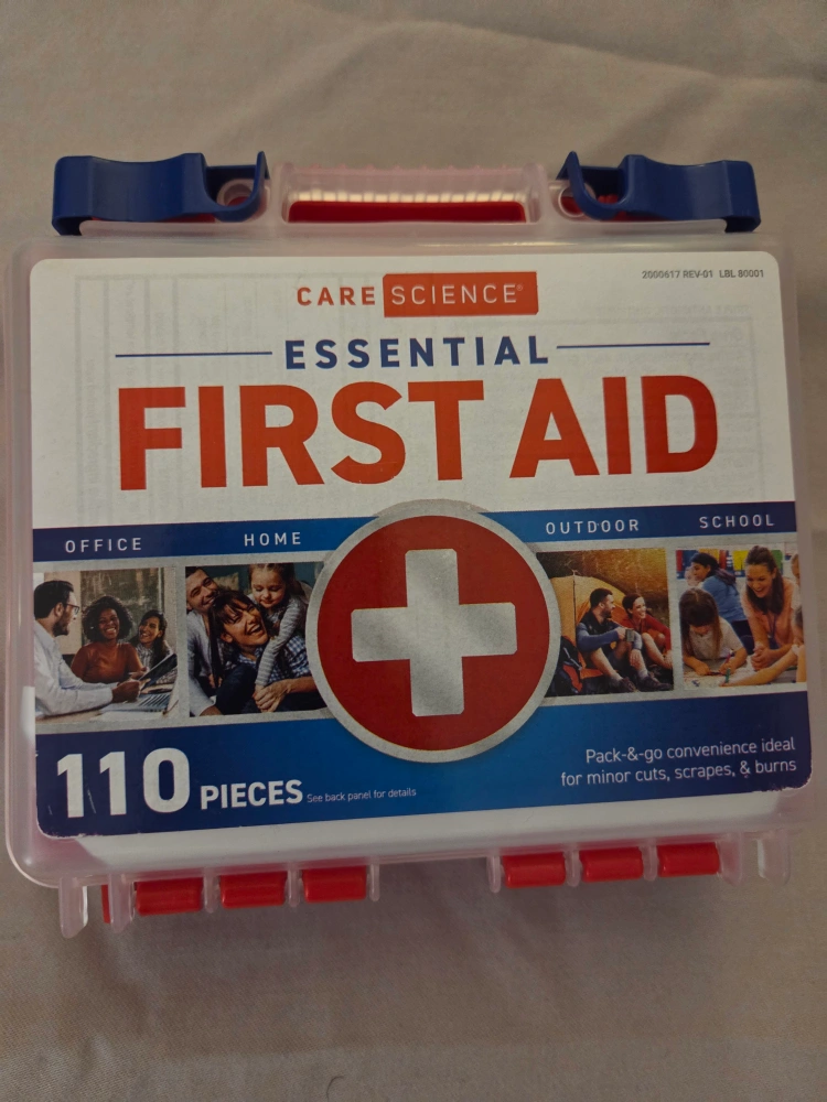 Selling a Care Science Essential First Aid Kit with 110 pieces! It's perfect for home, office, outdoor, or school use. This pack-and-go convenience is ideal for minor cuts, scrapes, and burns.