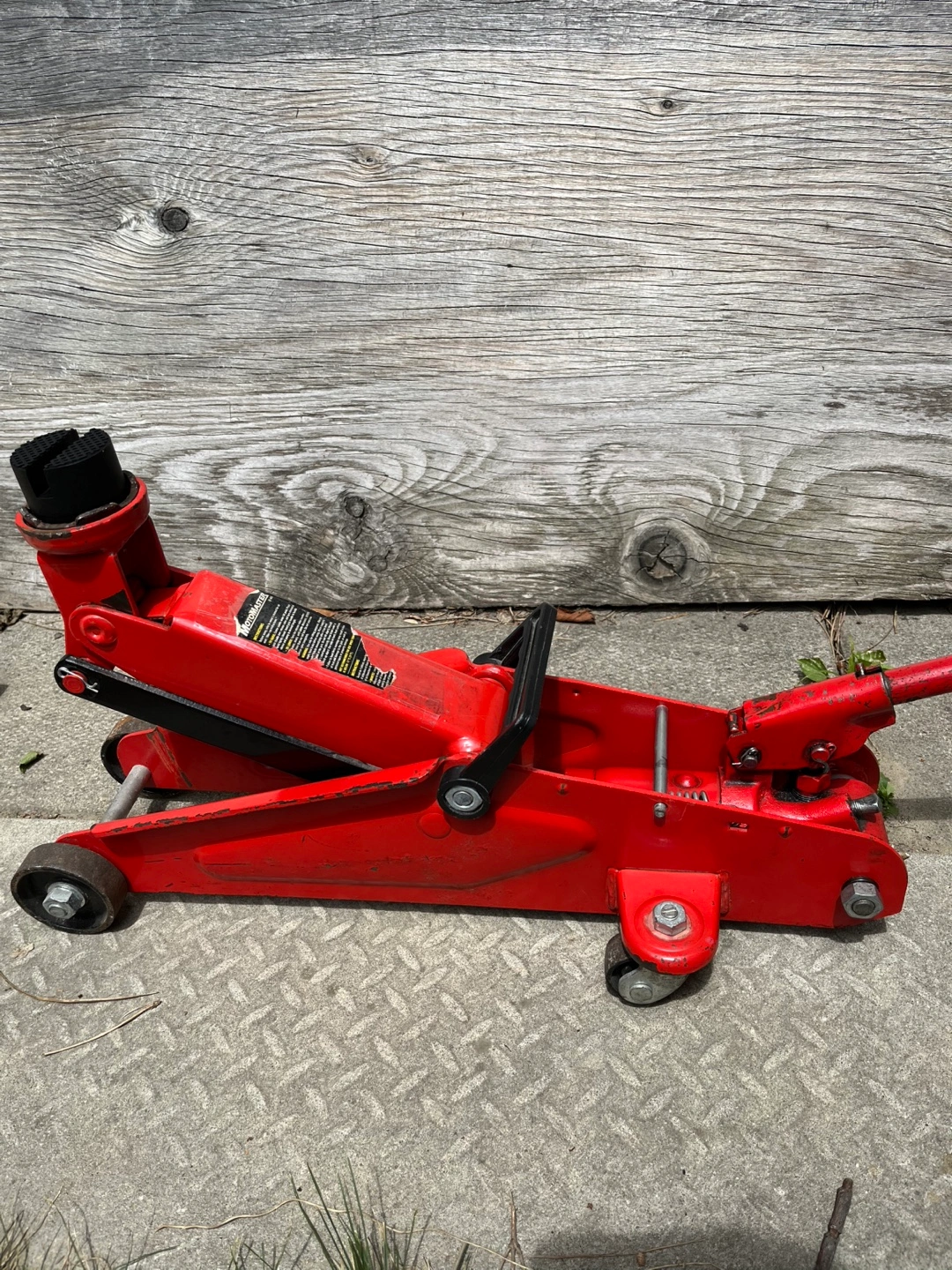 Selling a 21/4 ton red hydraulic floor jack. It shows signs of wear but is still in perfect condition also comes with rubber pad. Great for car maintenance and repairs.