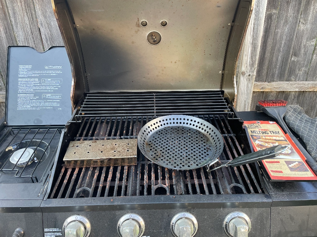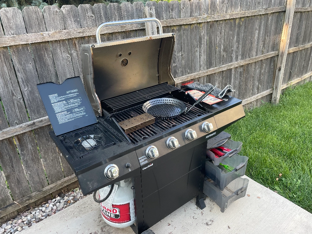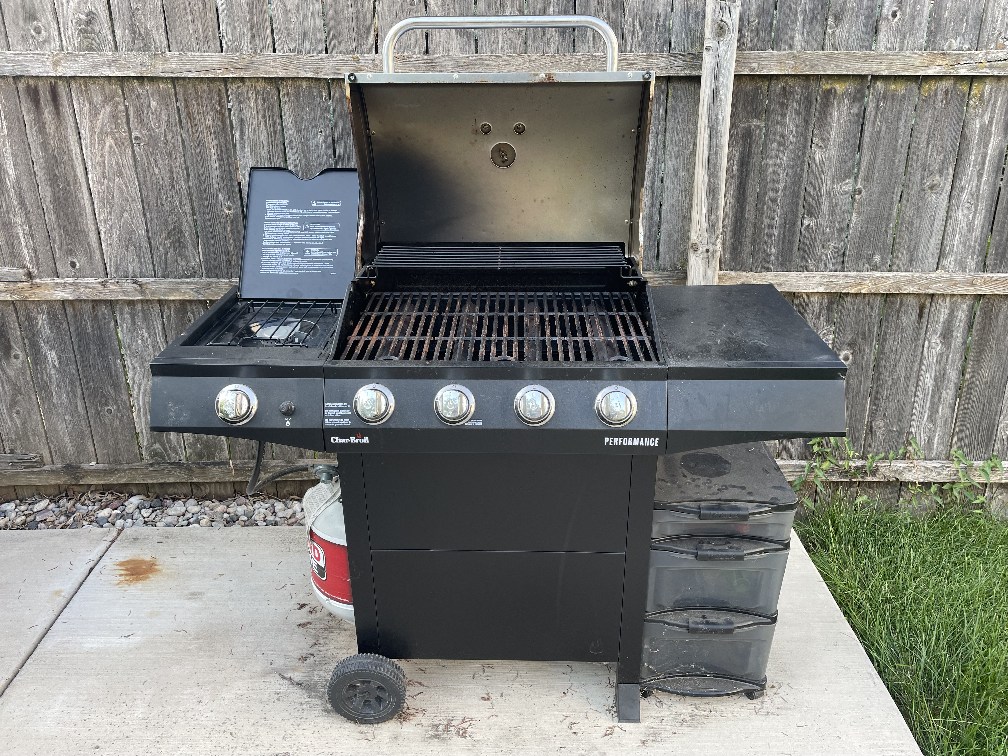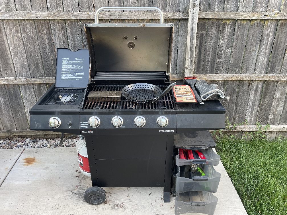 Selling a Char-Broil Performance grill. It has some signs of use, but is still in good working condition. Includes a side burner and storage drawers. Comes with a cover to protect it from the elements and propane tank.