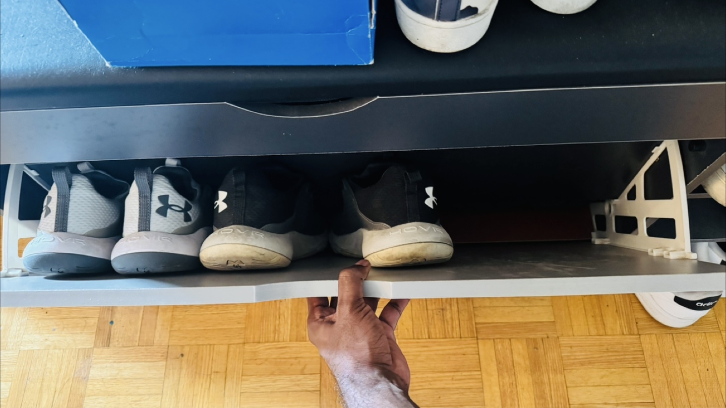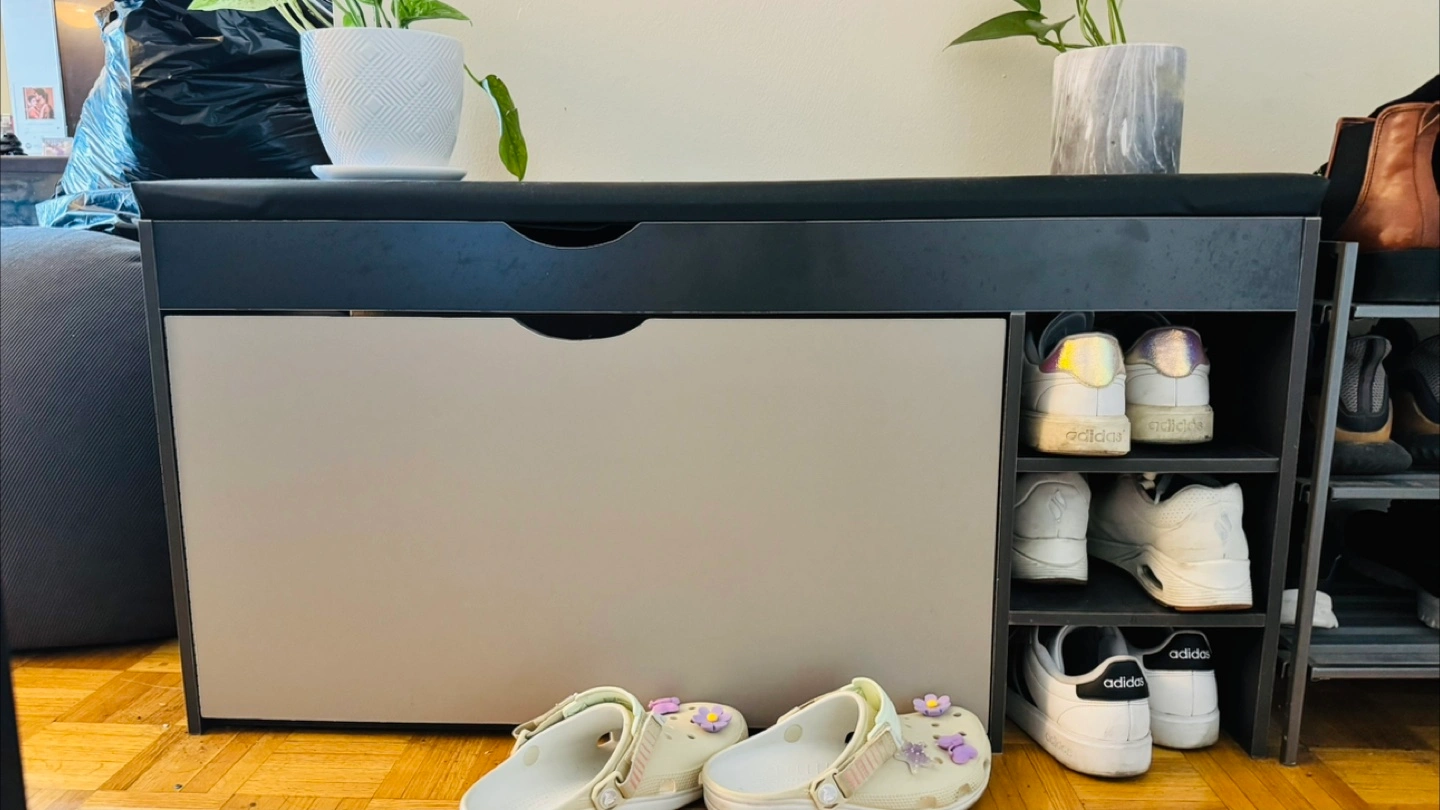 Selling a handy shoe cabinet that doubles as a bench! It's perfect for keeping your entryway tidy and giving you a spot to sit while you put on your shoes. Great for small spaces!