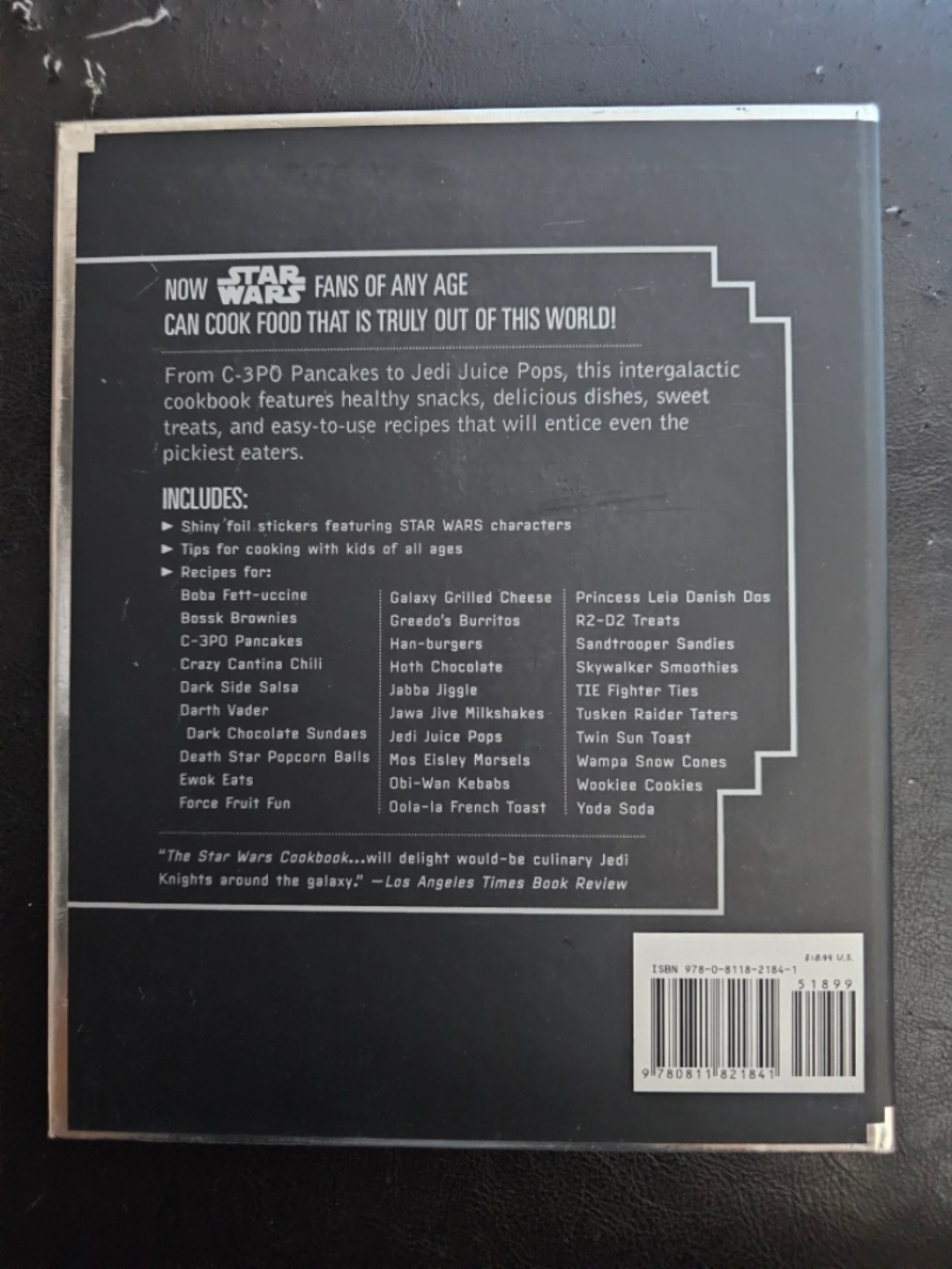 Selling The Star Wars Cookbook, which includes recipes like Wookiee Cookies and other galactic treats! It also includes shiny foil stickers featuring Star Wars characters. This cookbook features healthy snacks, delicious dishes, sweet treats, and easy-to-use recipes that will entice even the pickiest eaters