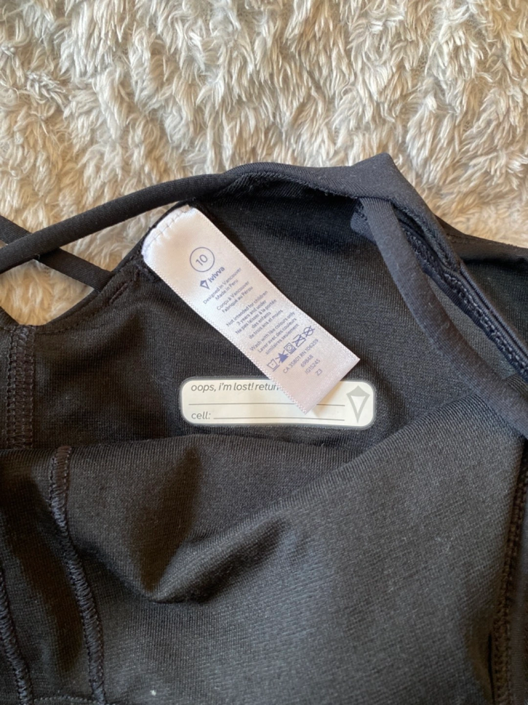 Iviva girls size 10 by Lululemon - black tank and bra top
