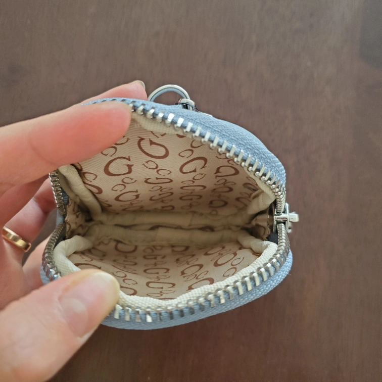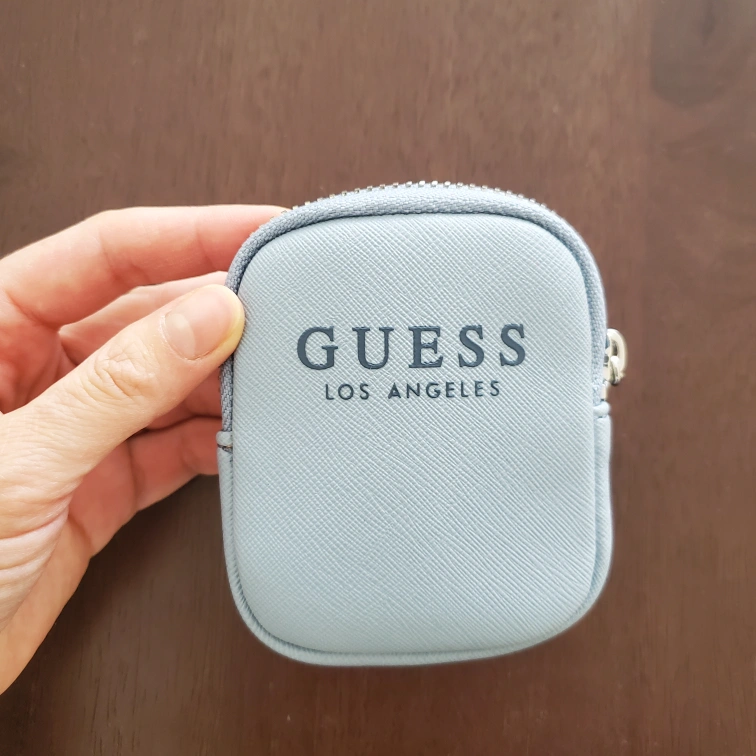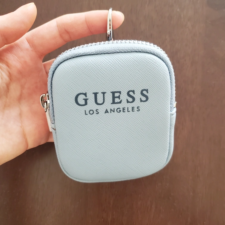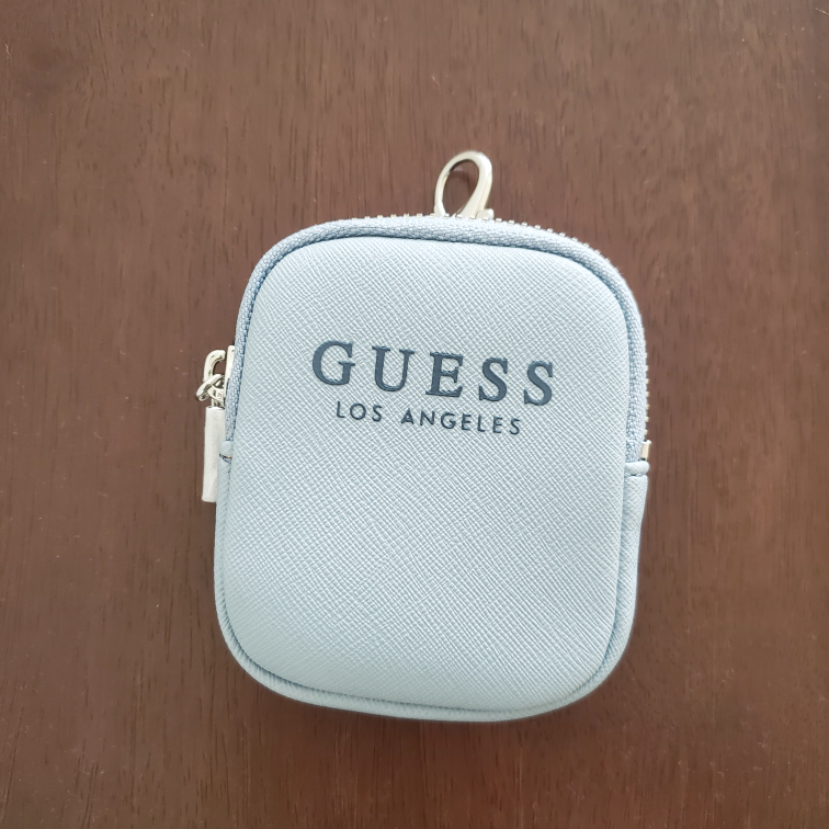 Selling a cute light blue coin pouch from GUESS Los Angeles! It's in great condition and perfect for carrying small items like coins or jewelry. The interior has a fun GUESS logo pattern.