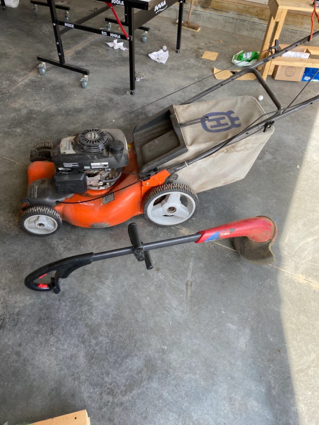 Husqvarna lawn mower needs a tune-up (starts but won’t stay running). Toro weed trimmer has no battery (compatible with tool batteries like Milwaukee). I’m moving and will no longer have a yard, so have no need for them. Pick up in Auburn Bay SE.