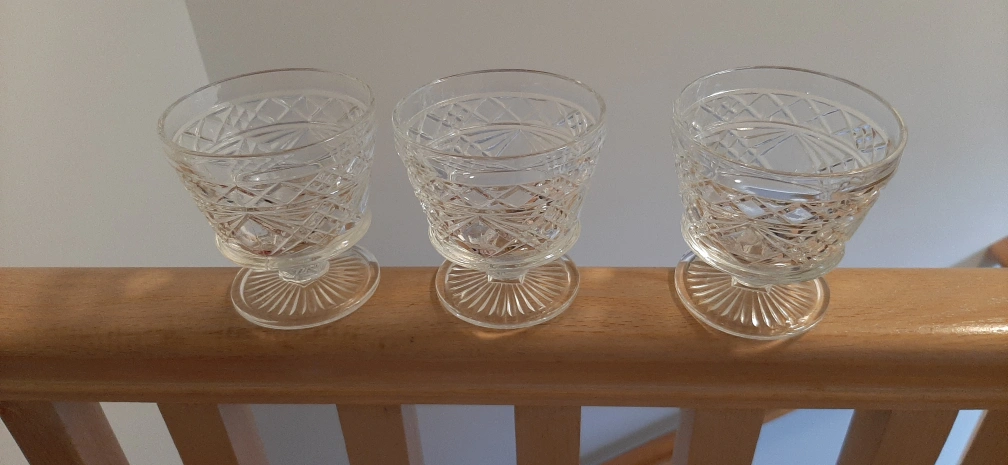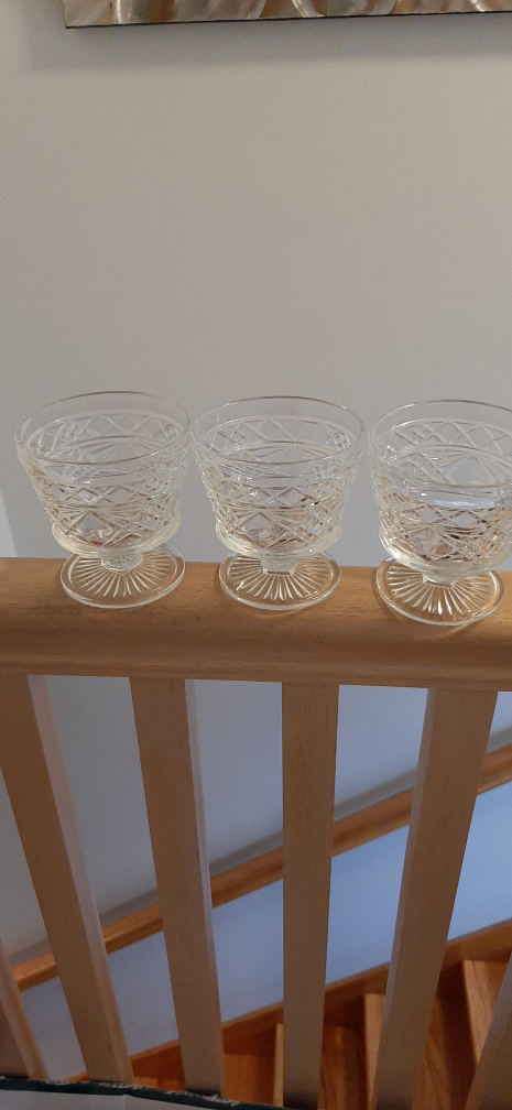 3 Hazel Atlas Gothic Footed Glass Dessert Bowls - Dessert Glasses - Sherbet Glasses - Ice Cream Glass Pedestal Bowls/Glasses