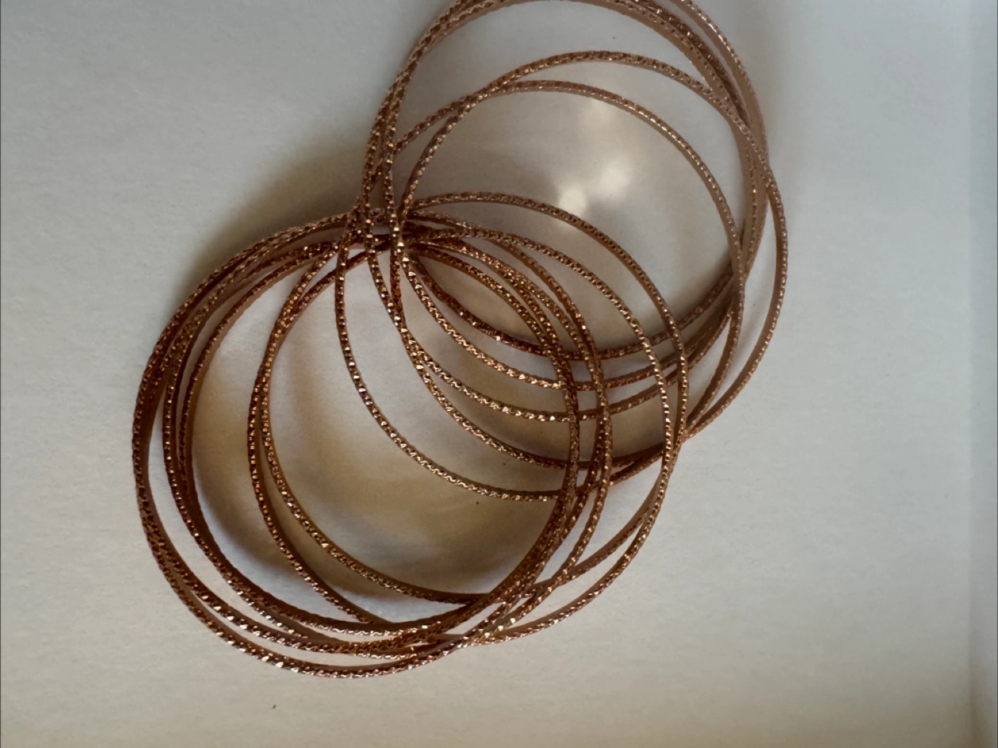 1000+Here's a set of rose gold-toned bangle bracelets! They have a lovely textured design and are perfect for adding a touch of sparkle to any outfit Cash Pick up near Lawrence and Keele