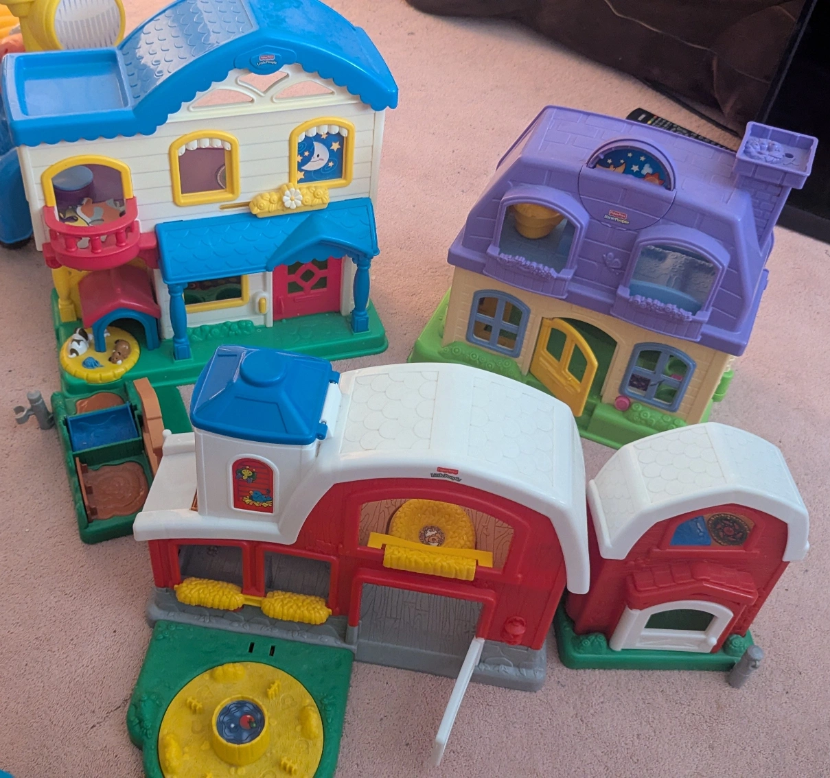 Selling a Fisher-Price Little People 3 playsets! Includes a blue and white house, a purple house, and a red and white barn. Great for toddlers and preschoolers to explore imaginative play! Lot of all 3!