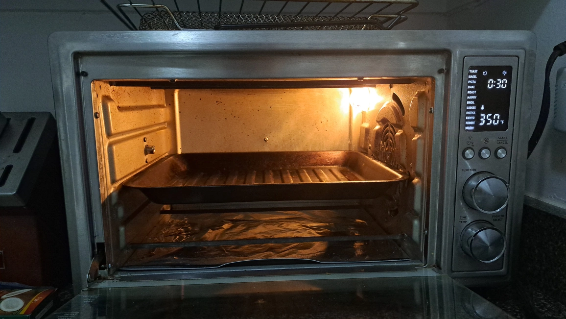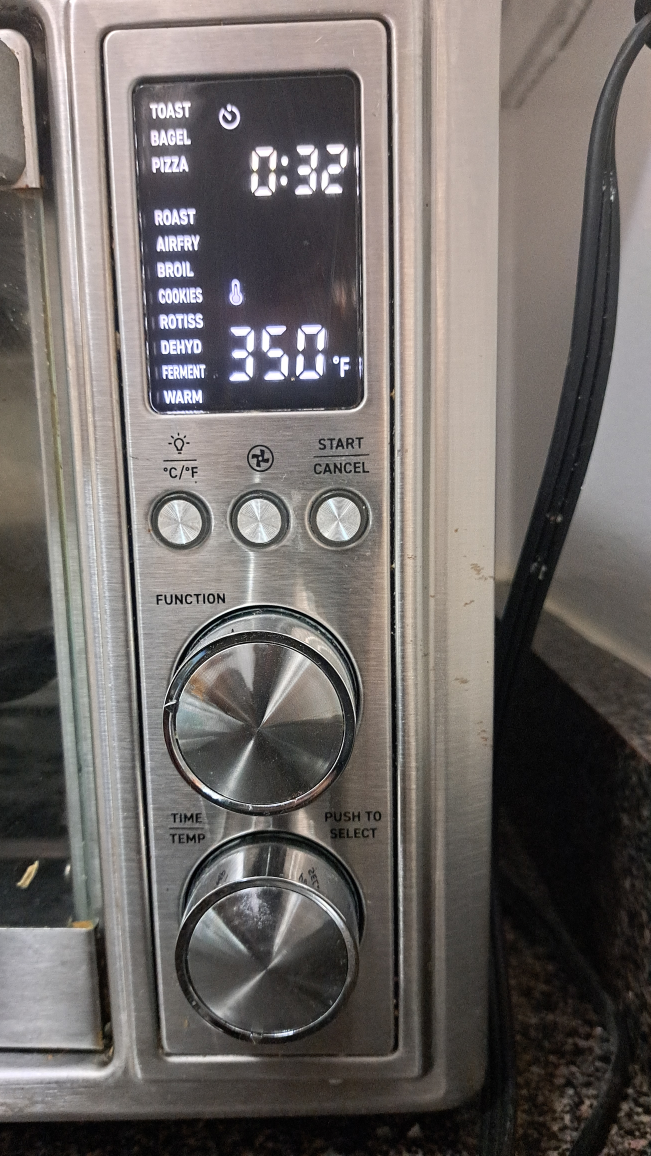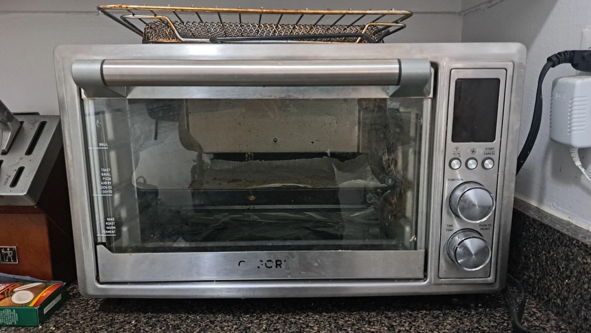 it's a really good toaster oven with a great option for air-fryer as well. It is quite a versatile appliance. It even has a dehydrator option. it's been well maintained. comes with 1 baking sheet, 1 air-fryer mesh tray, 1 rack.
