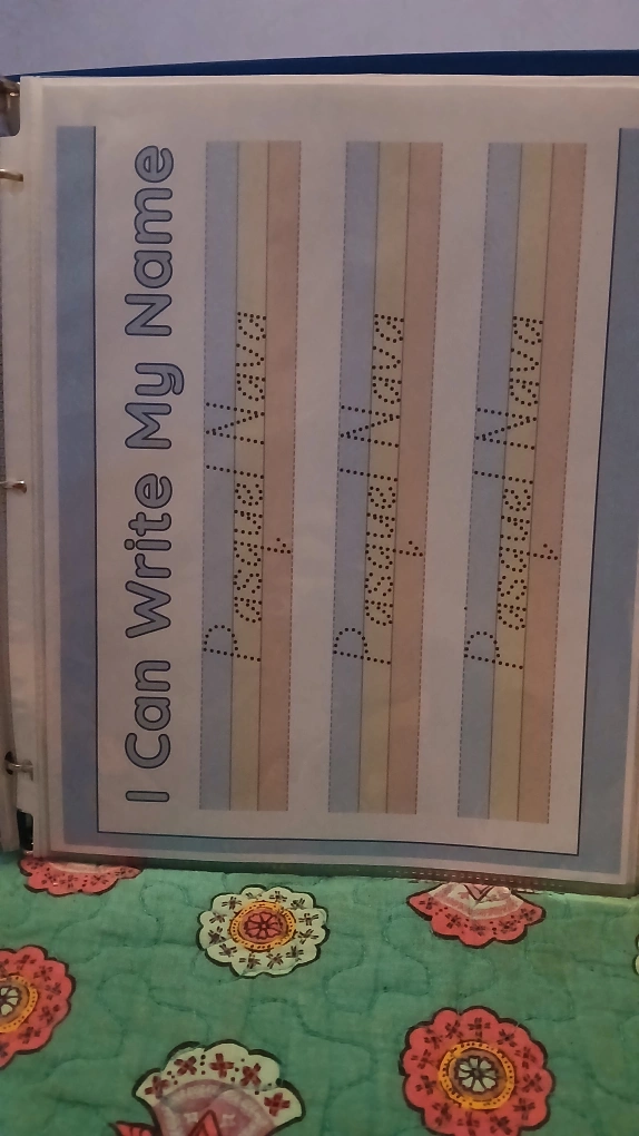This is a preschool learning pack with activities that include name tracing practice, writing your name, and coloring pages back to school binders