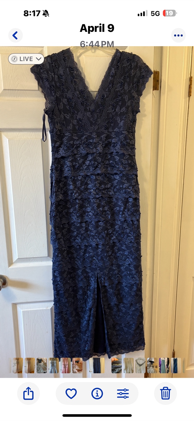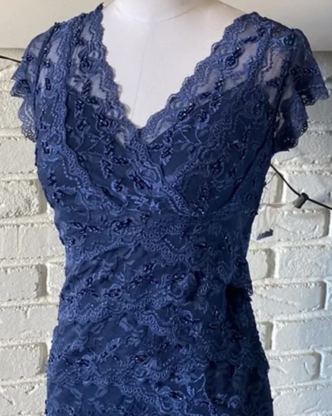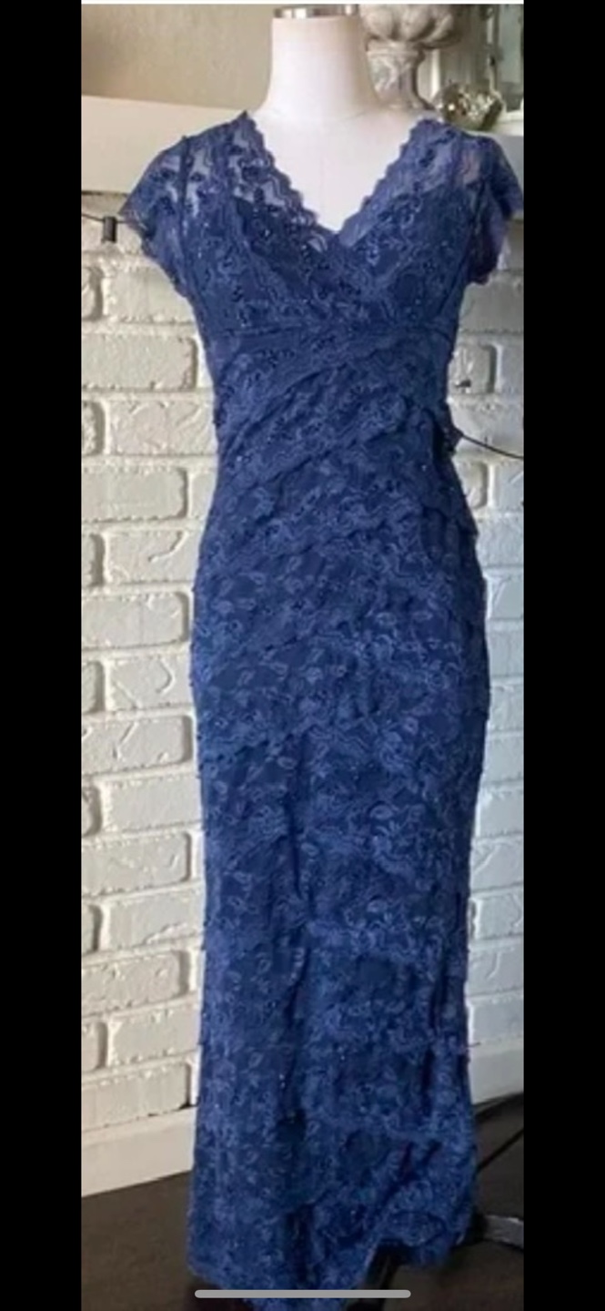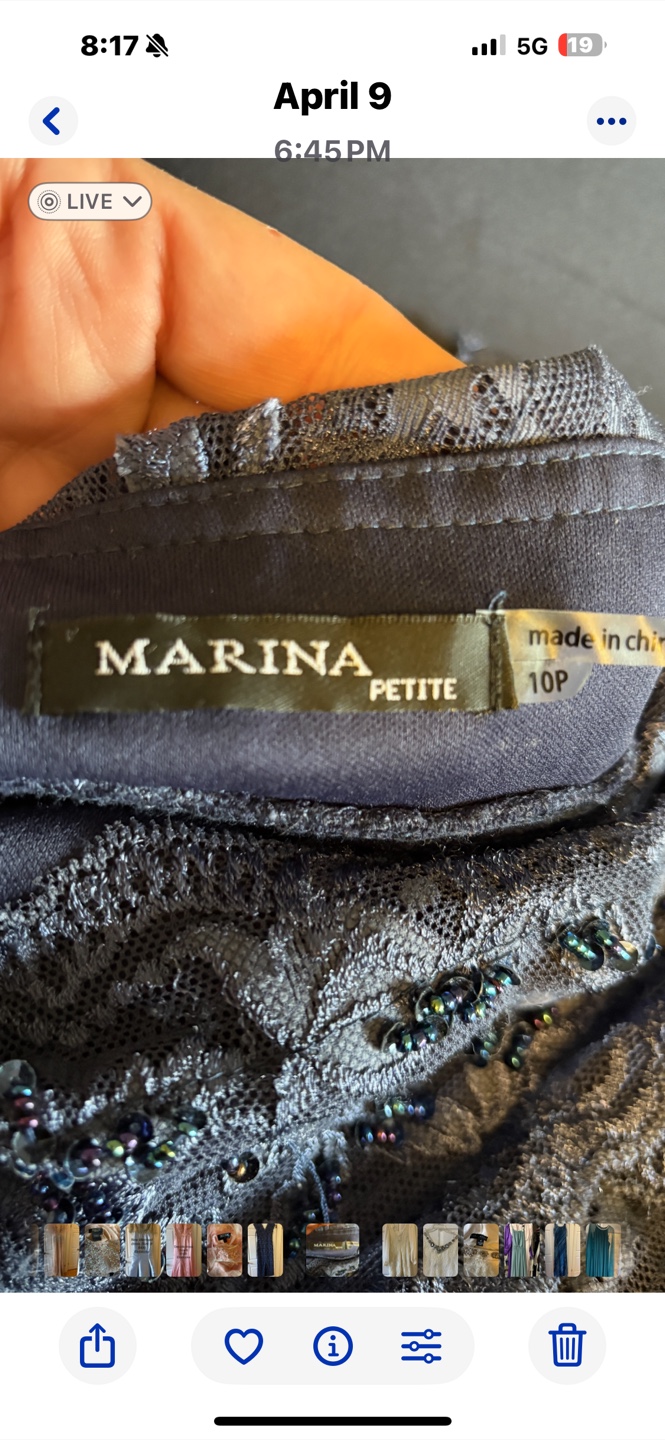 Selling a lovely Marina Petite lace dress in size 10P. It's a beautiful navy blue colour and in great condition. Perfect for a special occasion or evening out!