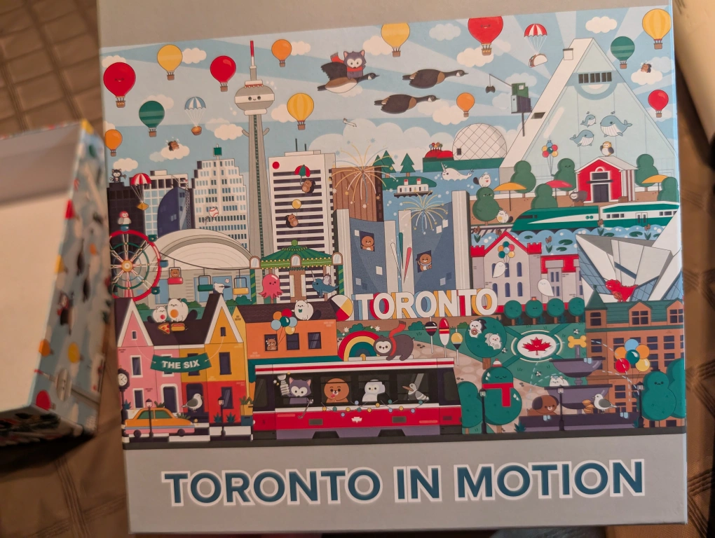 Selling a 'Toronto In Motion' jigsaw puzzle! It's a fun and colourful depiction of Toronto landmarks and neighbourhoods. Great quality. comes in a cloth bag with poster. no missing pieces. $15