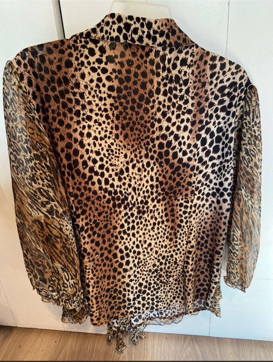 L️Add a touch of wild elegance to your wardrobe with this Amanda Collection leopard print blouse in size 1XL! The chiffon fabric gives it a light and airy feel, perfect for dressing up or down. It features long sleeves and ruffled details, ensuring you’ll turn heads wherever you go. Being a used item, it has been well cared for and is in good condition, ready for its next adventure.
