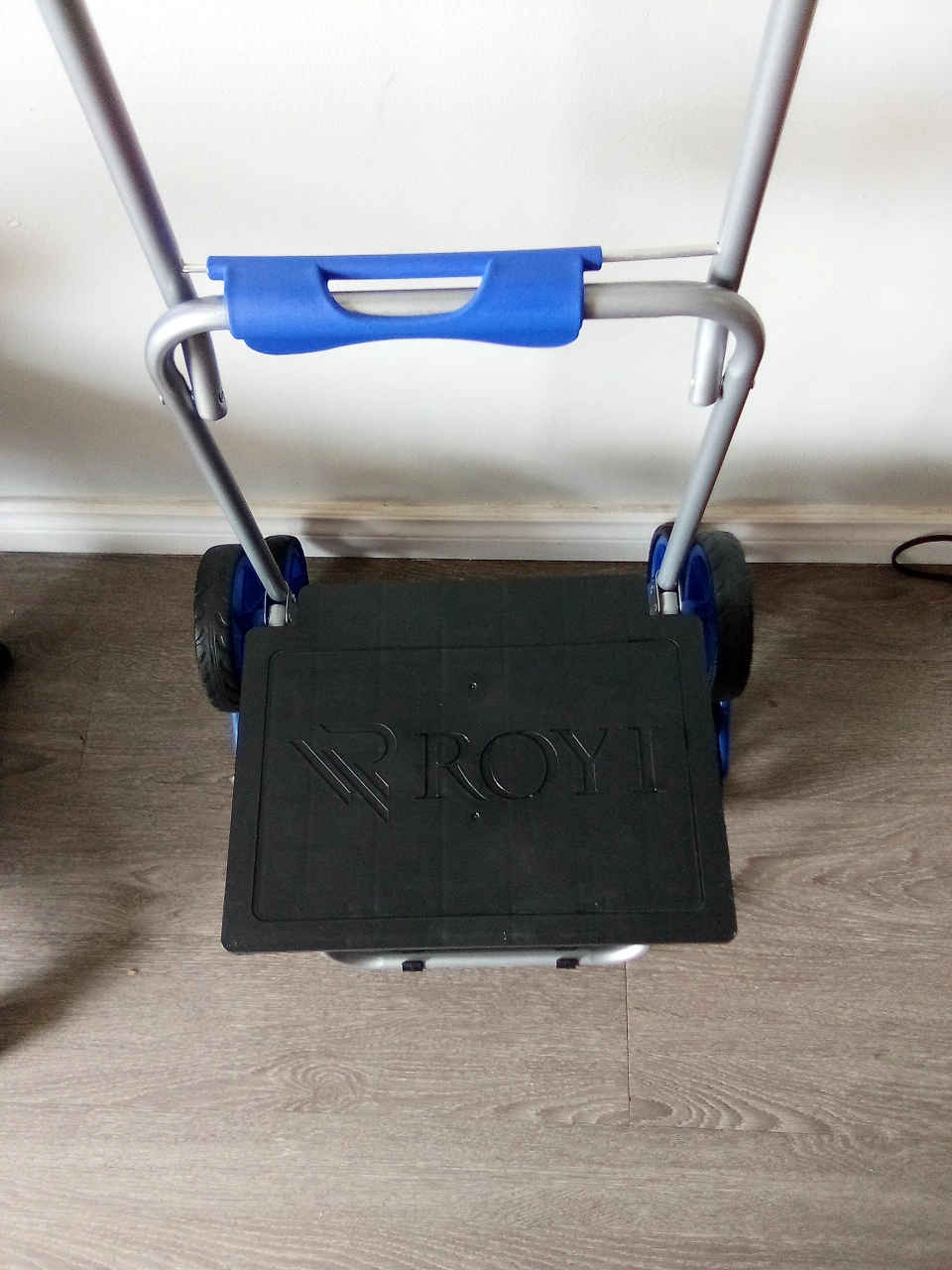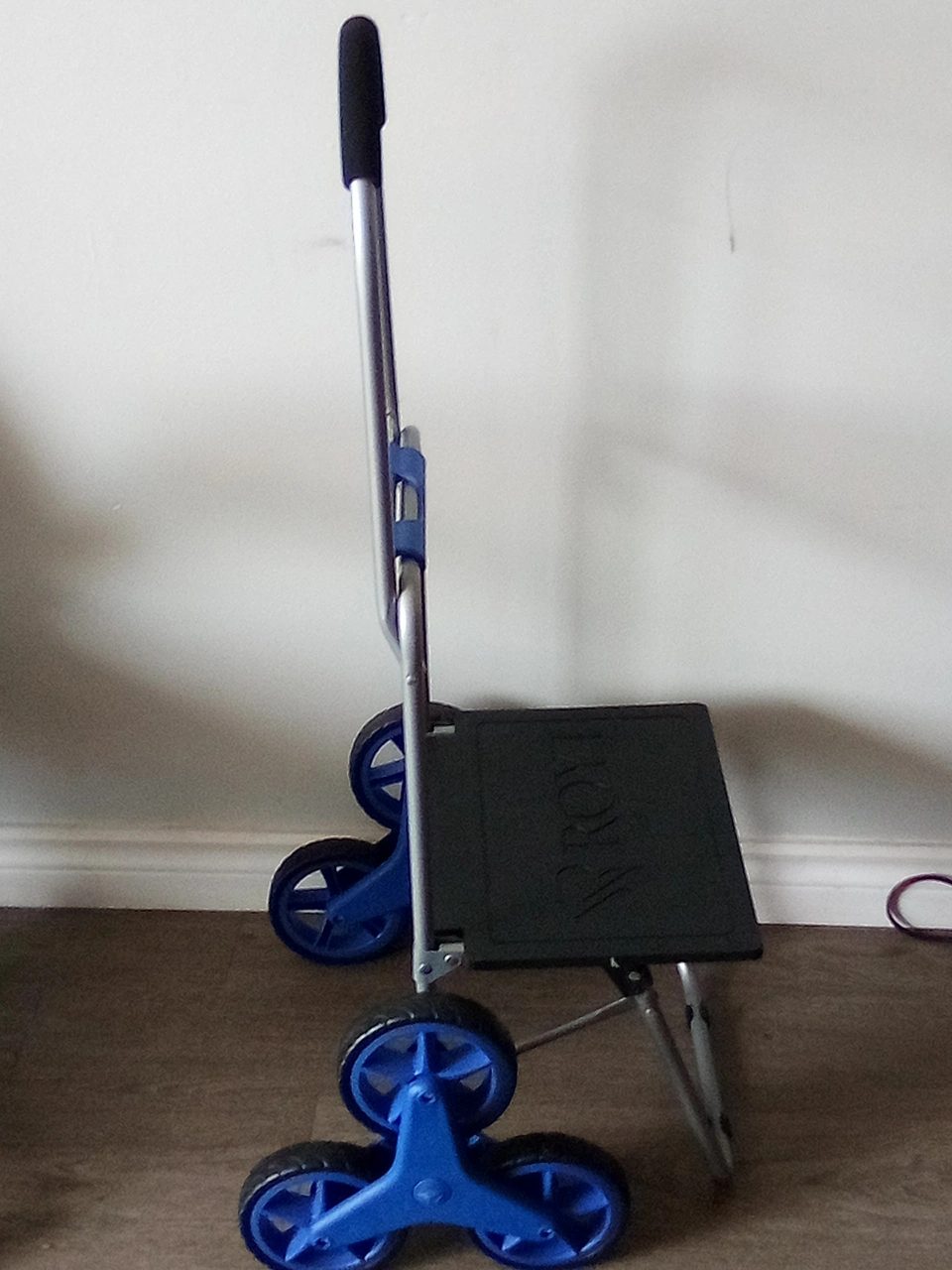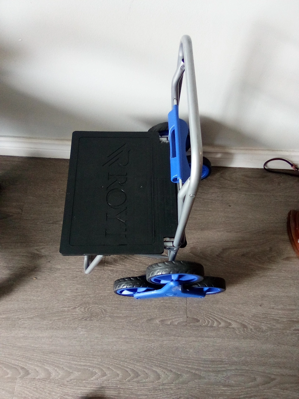 Selling a WROYY stair climber cart in blue and black! This handy cart makes it so much easier to bring things up and down stairs. It's in great shape and ready to help you with your moving needs!