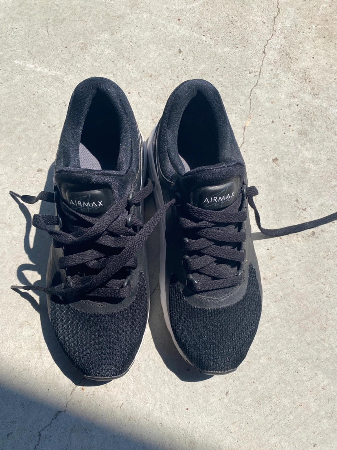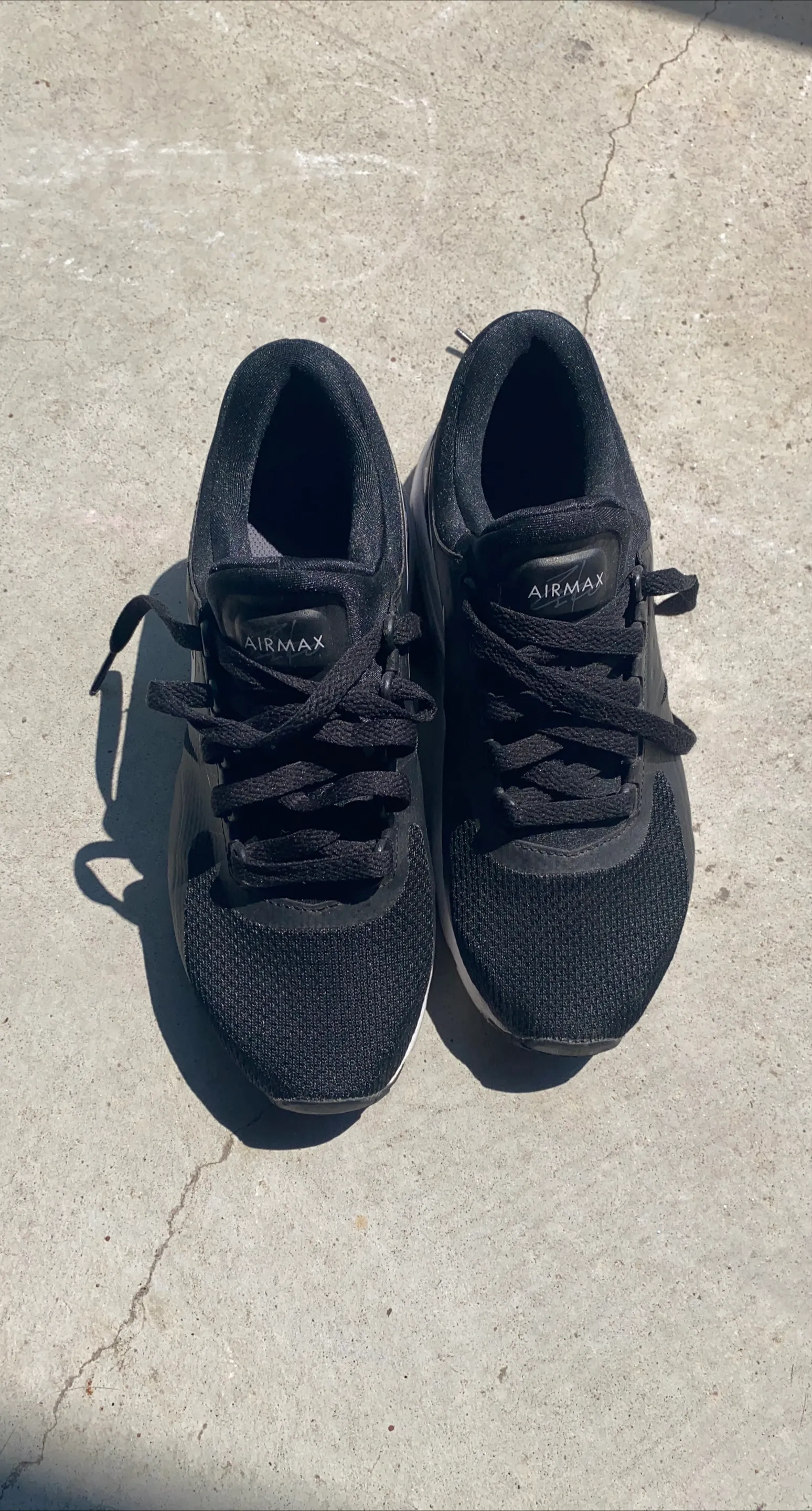 Selling a pair of Nike Air Max sneakers in black. They're in great condition and ready for a new home!