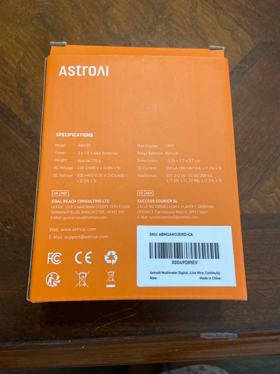 285Selling a brand new AstroAI AM33D digital multimeter! It has a max display of 1999 and manual range selection. Dimensions are 13.35 x 7.7 x 3.7 cm. Comes in its original box