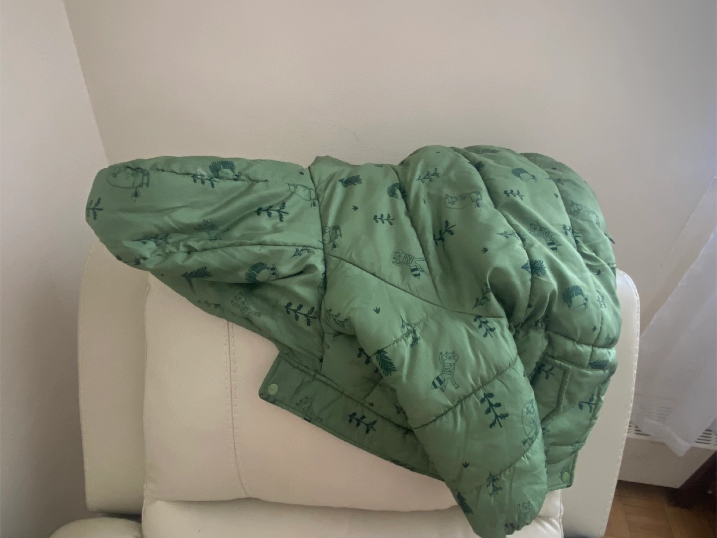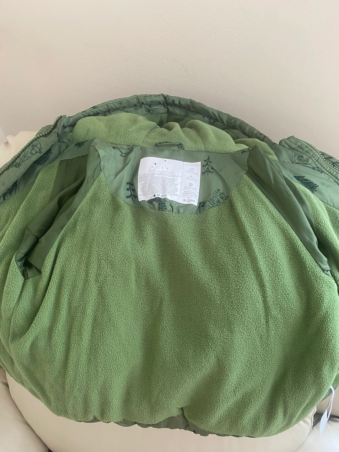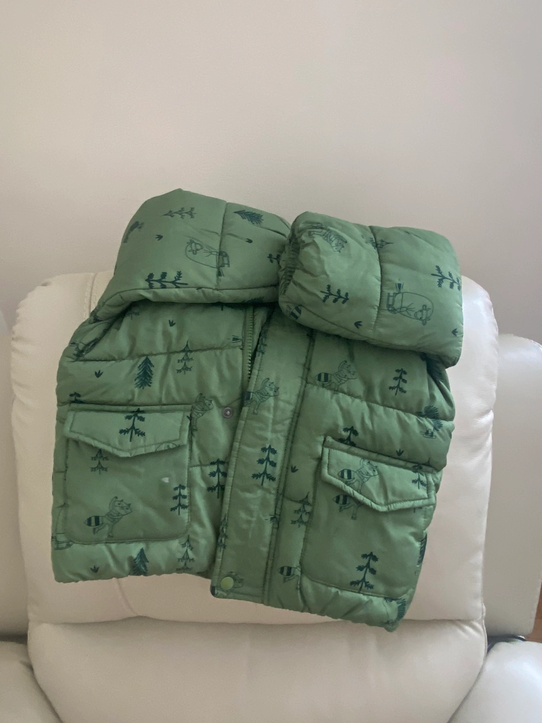 Selling a gently used Little Villains puffer vest, perfect for keeping your little one cozy! It's in great condition and features a cute pattern with trees and animals. Size is 18-24 months