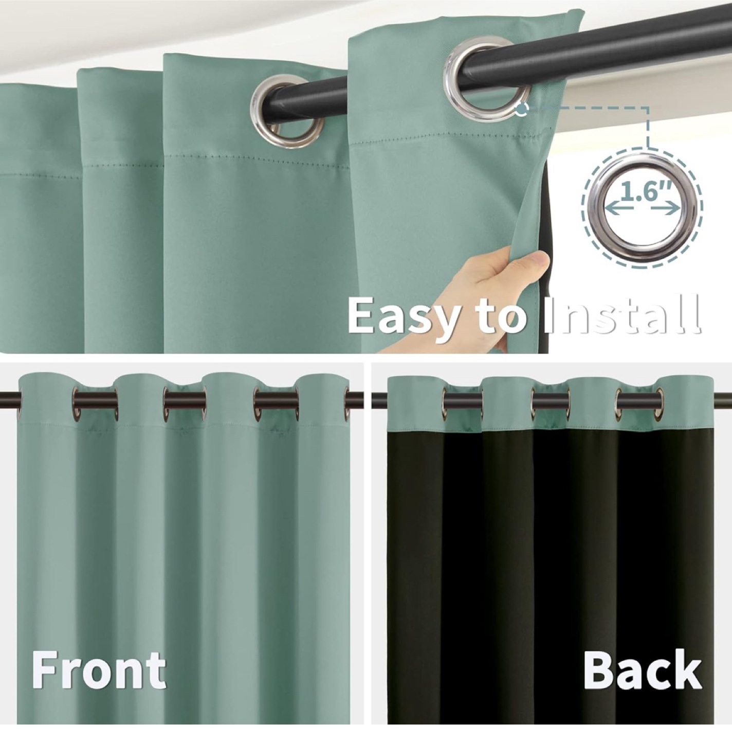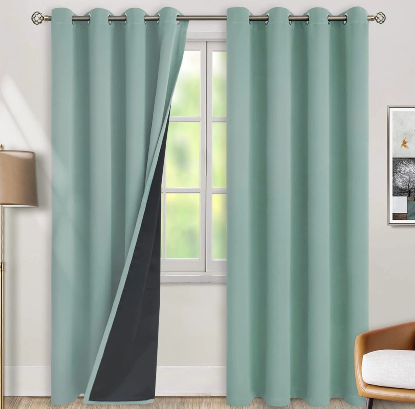 These curtains are designed to provide noise cancellation and privacy protect. They are thermal insulated to balance room temperature, keeping the room cool in the summer and warm in the winter. They are easy to install and offer 100% blackout.