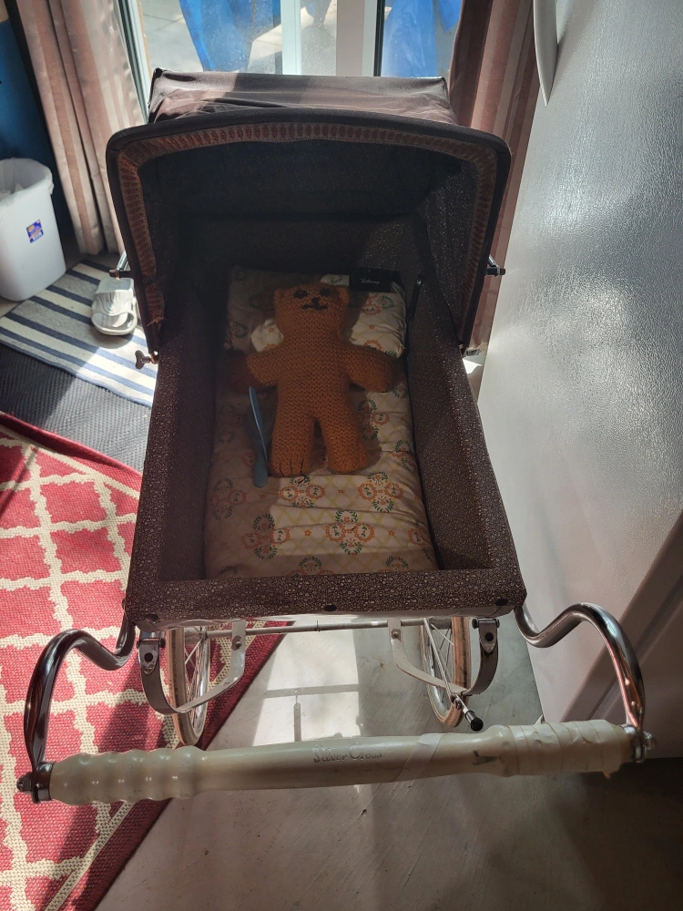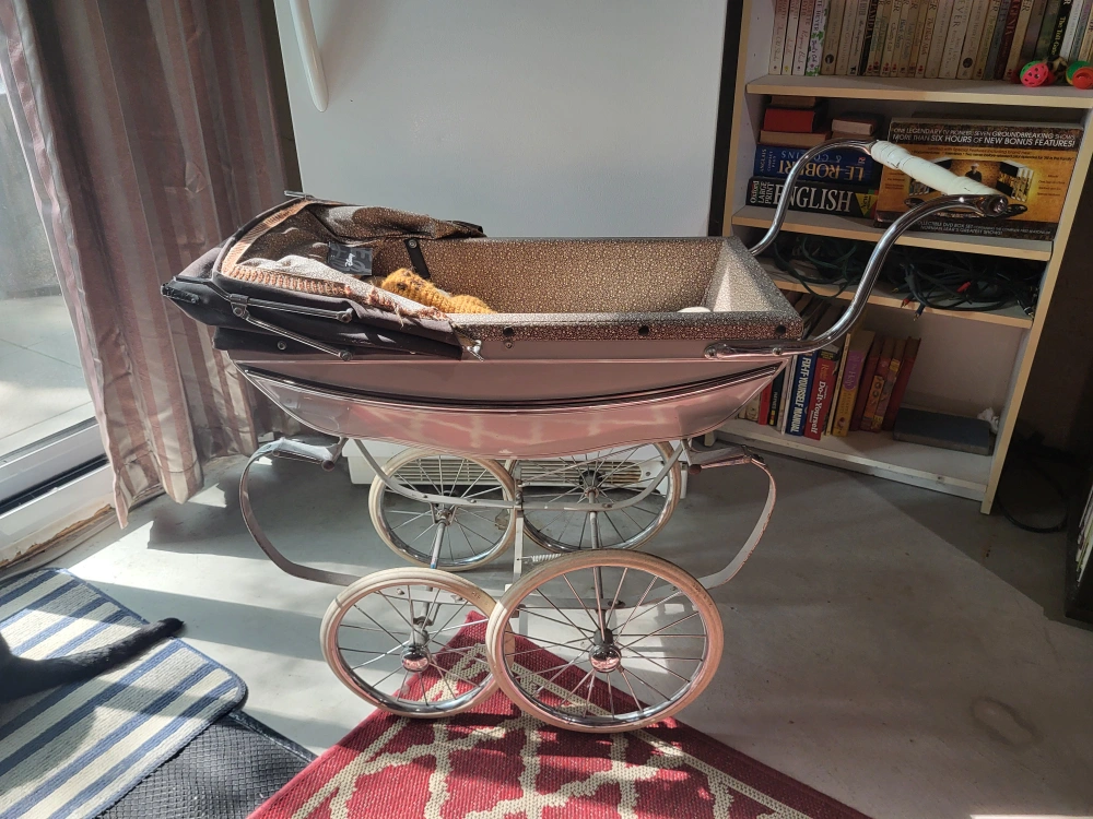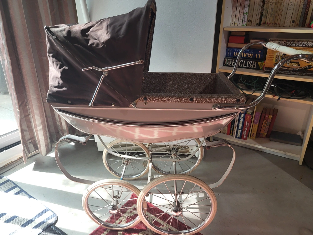 Selling a vintage Silver Cross pram! It's a classic baby stroller with a charming, old-school design. Perfect for collectors or anyone looking for a unique piece for their little one. It's in good condition for its age, with the Silver Cross logo visible on the handle. A real beauty! Made in England.