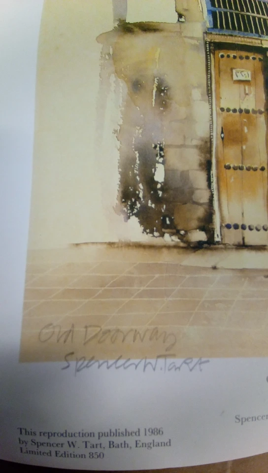 1000+Selling a print of "Old Doorway I" by Spencer W. Tart, R.I.B.A., F.S.A.I. This reproduction was published in 1986 by Spencer W. Tart, Bath, England. It's a limited edition, number 850.