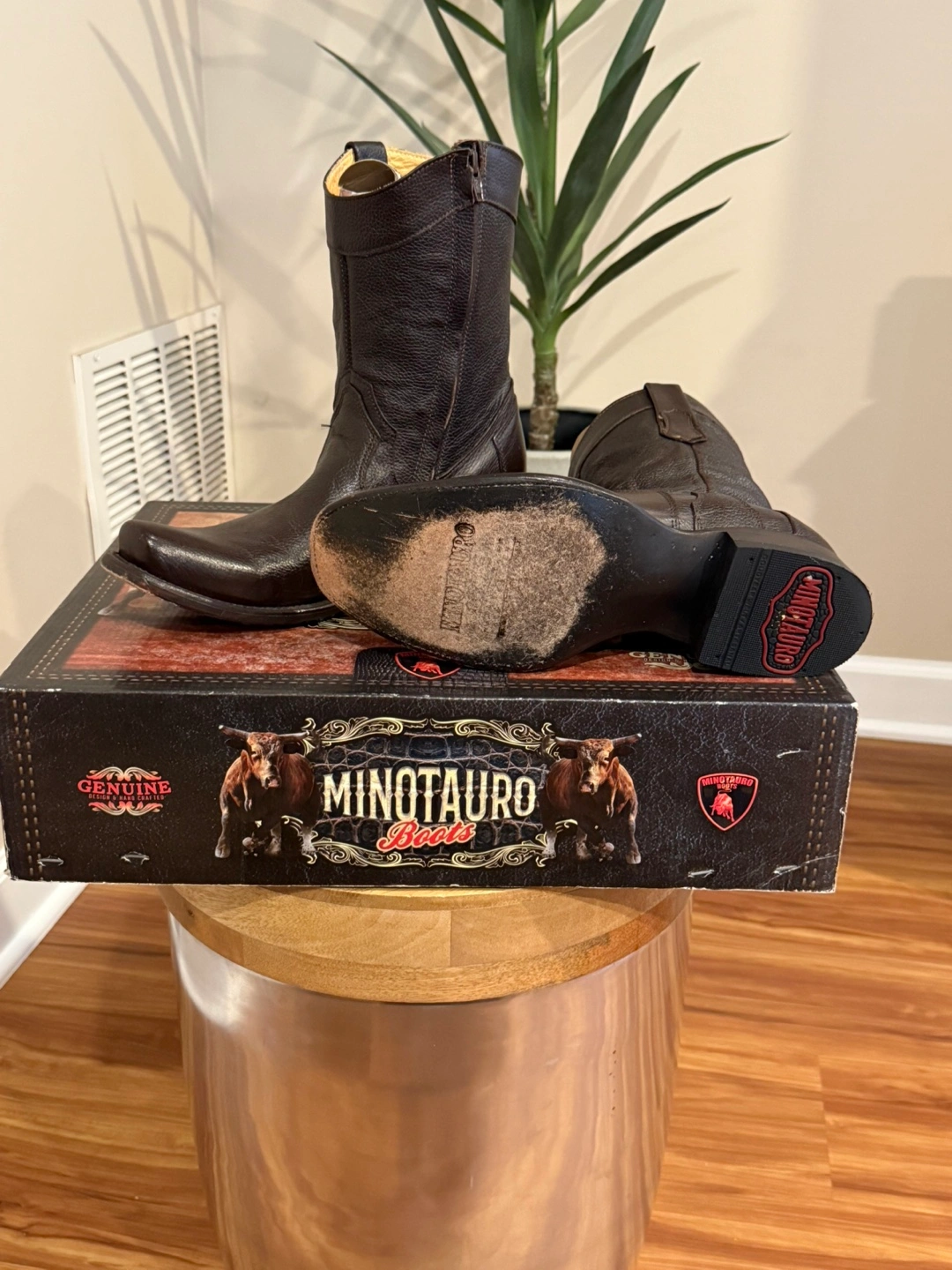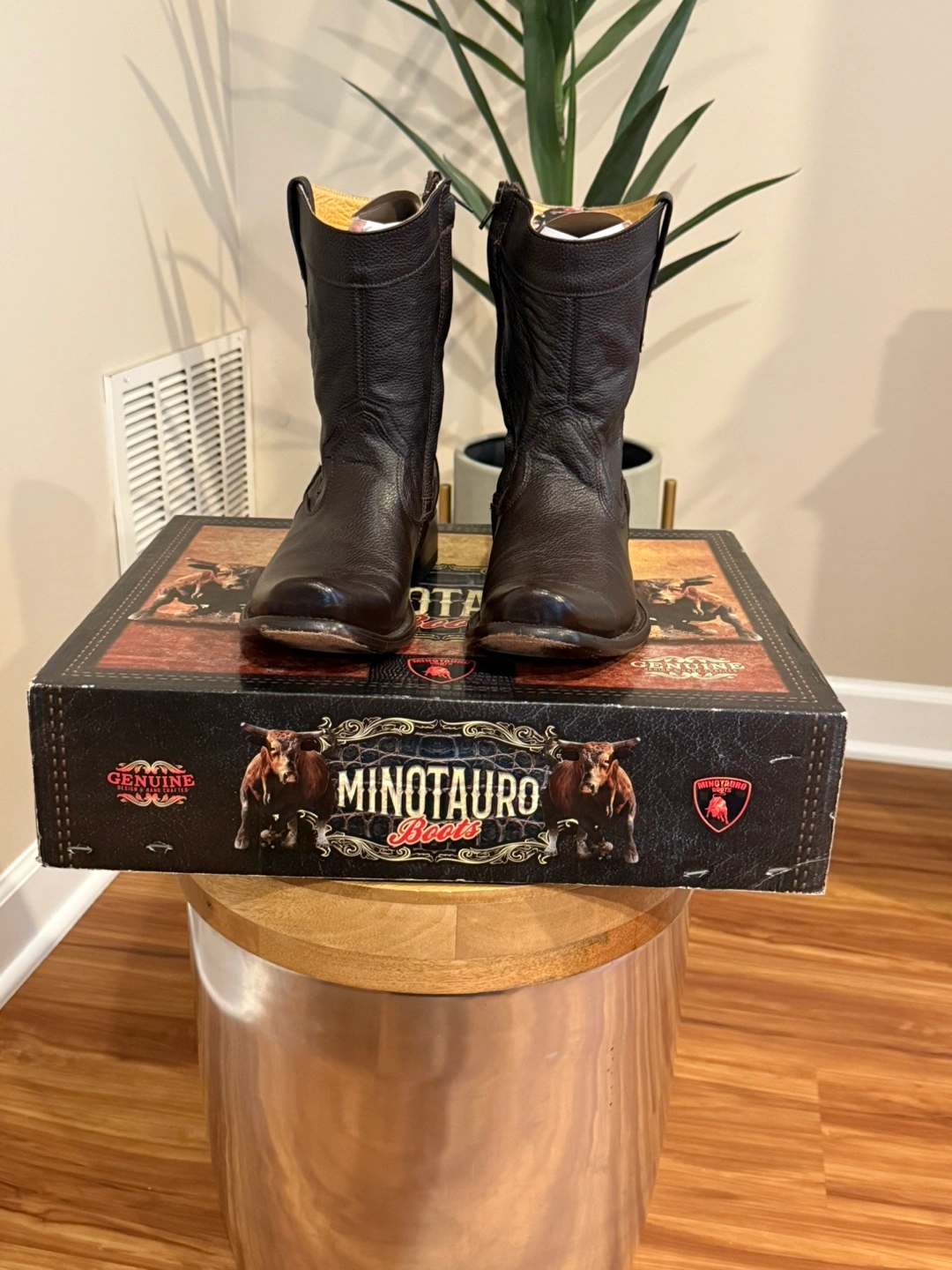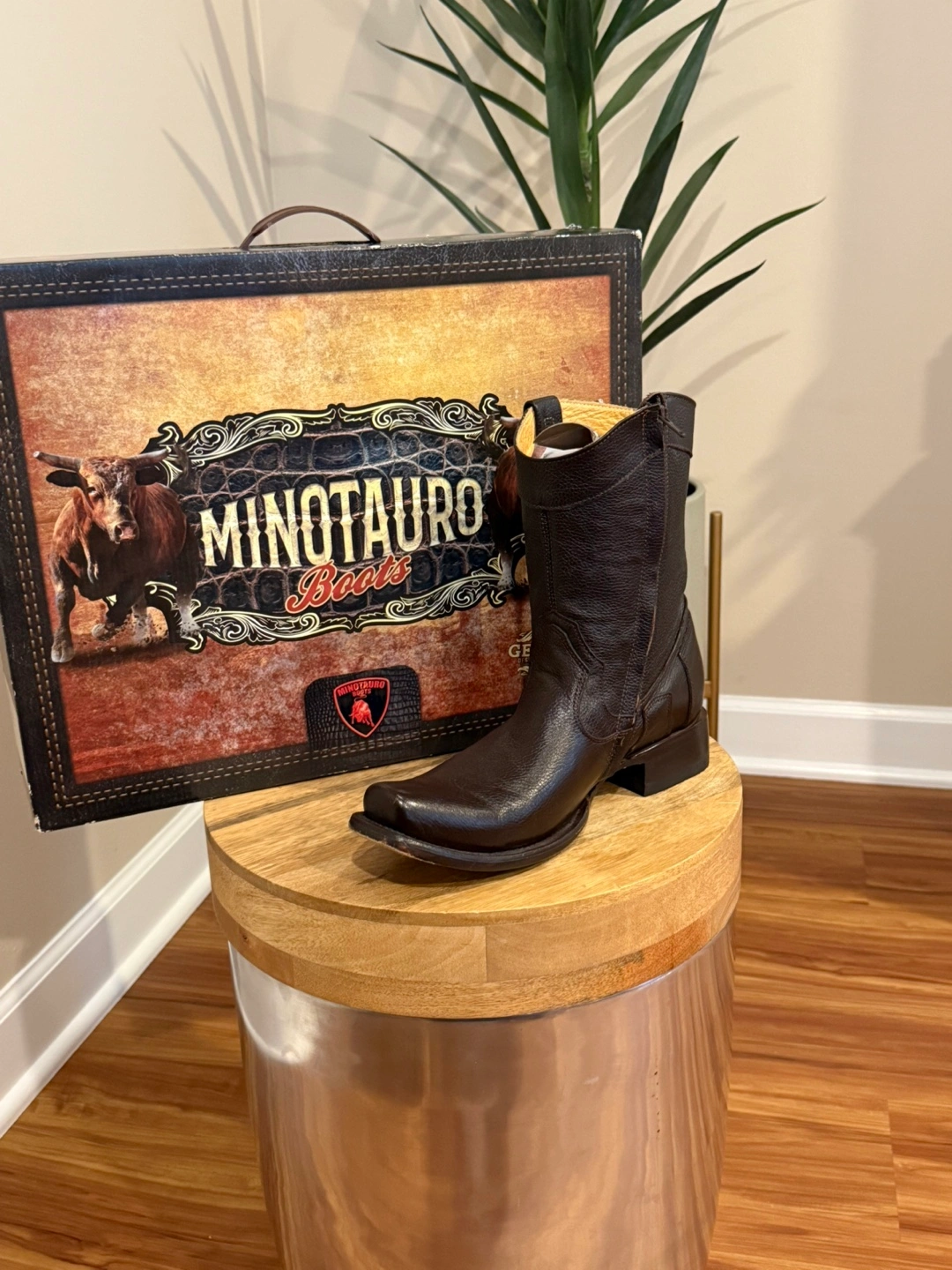 Selling a pair of Minotauro boots. Says size 7 but fits probably a 9. The boots are made of leather and are a cafe (brown) color. The style number is MT-015. They are in great condition and come with the original box! Cash only.