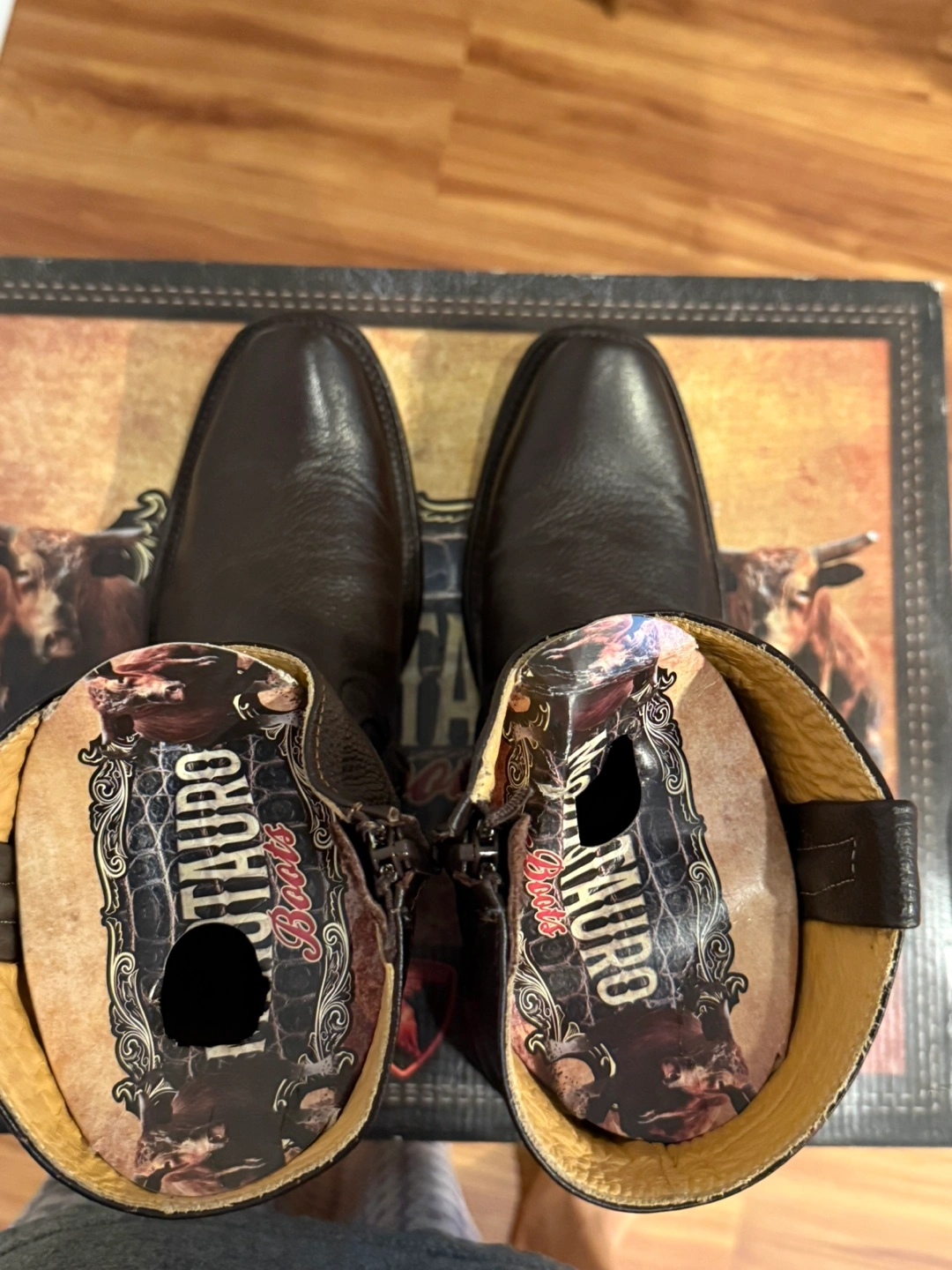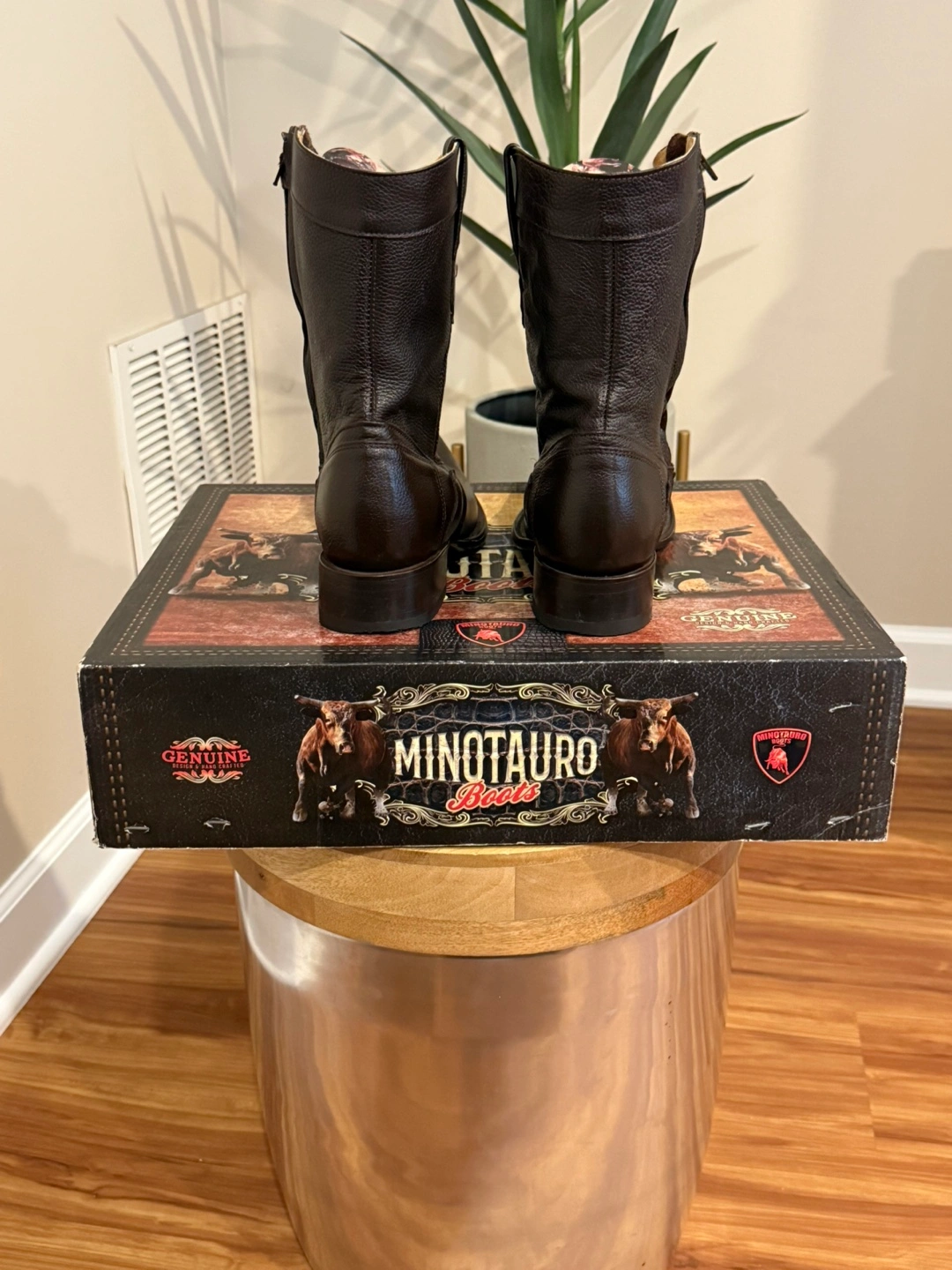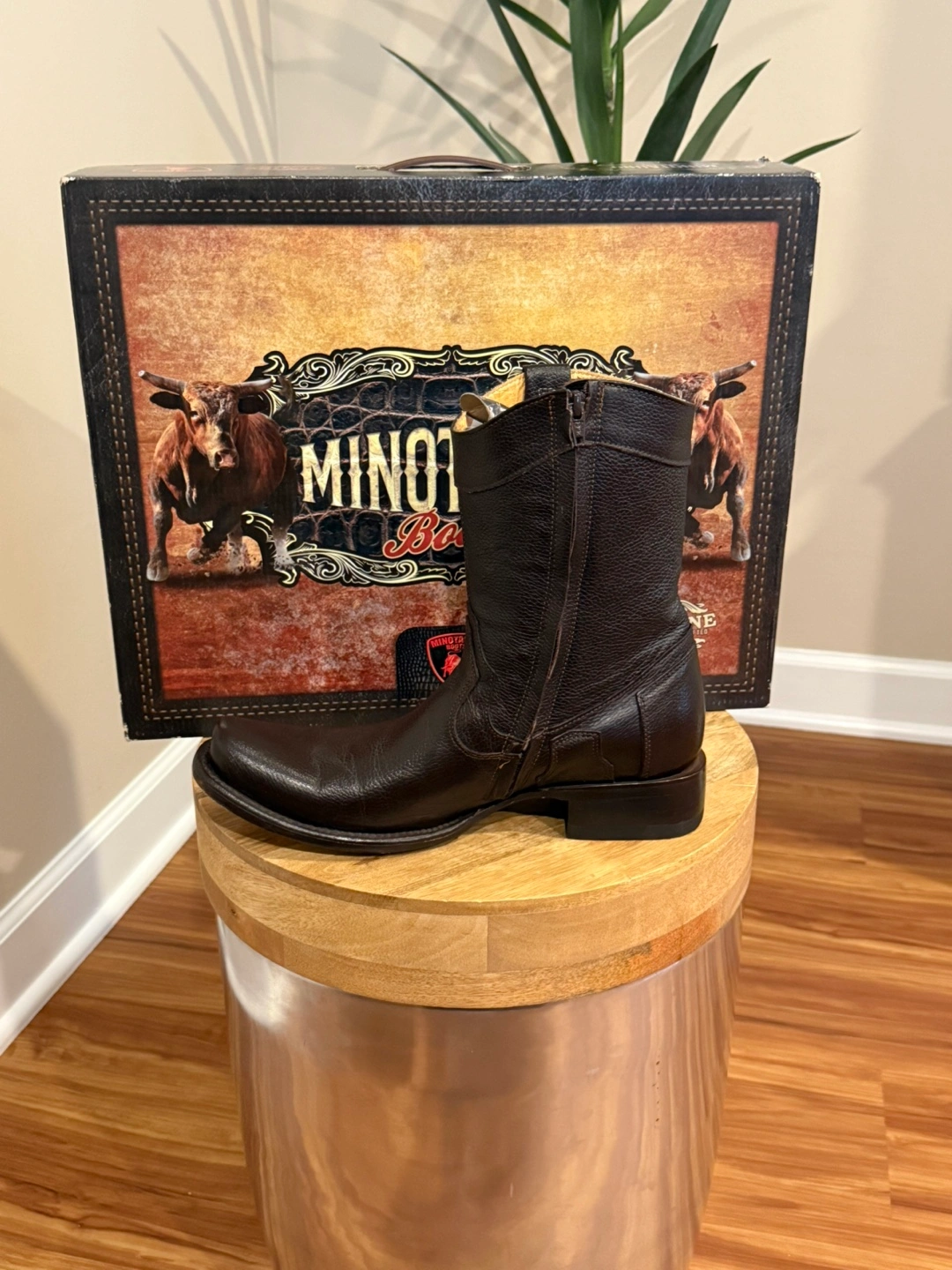 Selling a pair of Minotauro boots. Says size 7 but fits probably a 9. The boots are made of leather and are a cafe (brown) color. The style number is MT-015. They are in great condition and come with the original box! Cash only.