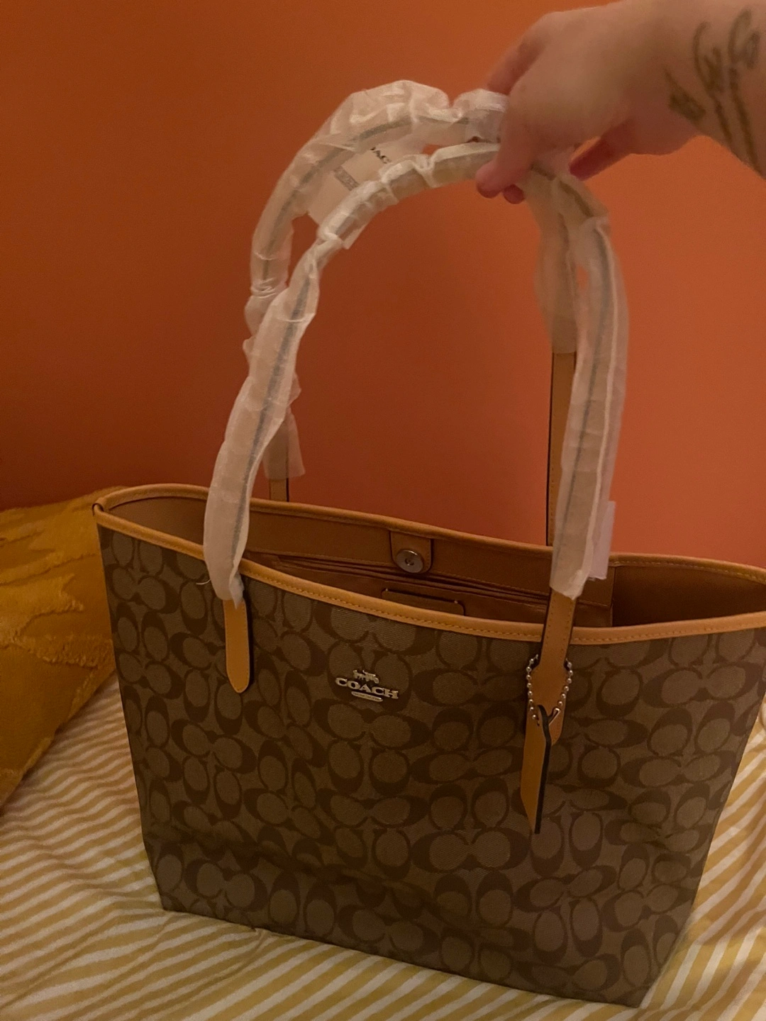 Selling a brand new Coach Signature City Tote in khaki/honeycomb! The tag shows a comparable value of $350 CAD. It's in perfect condition and ready for a new home
