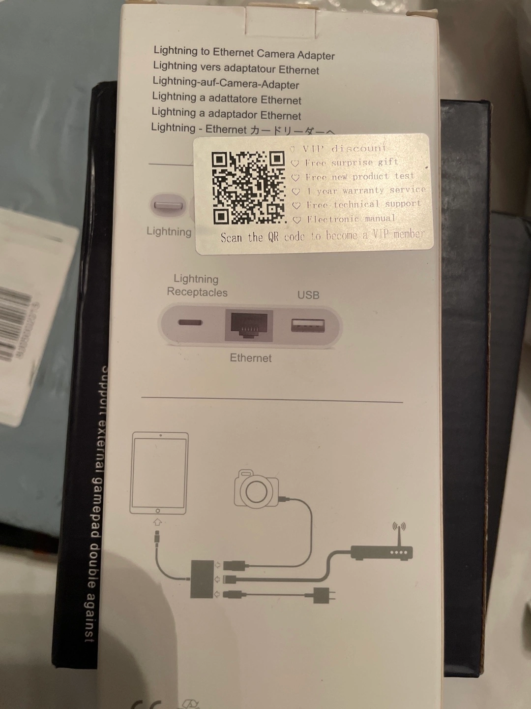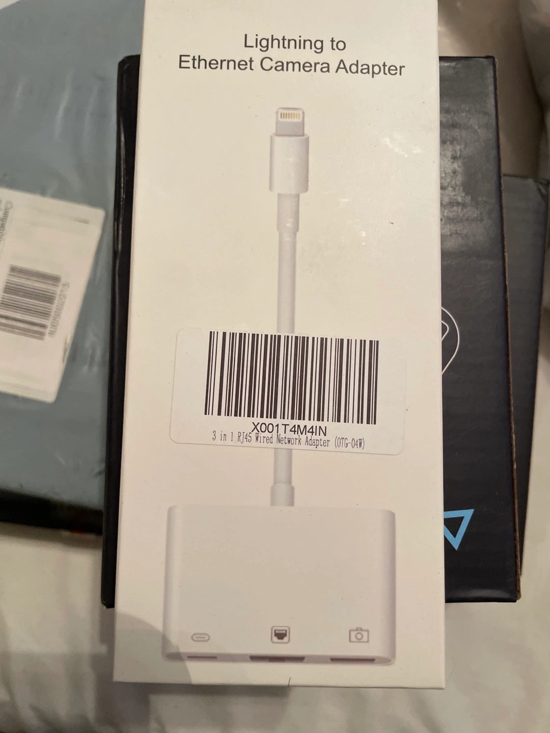 Selling a Lightning to Ethernet Camera Adapter. It's a 3 in 1 RJ45 Wired Network Adapter (OTG-04W). The box is included!