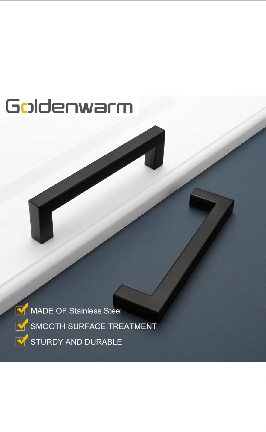 Selling a black Goldenwarm cabinet pull. It's made of stainless steel and is sturdy and durable. The pull measures about 4 inches in length