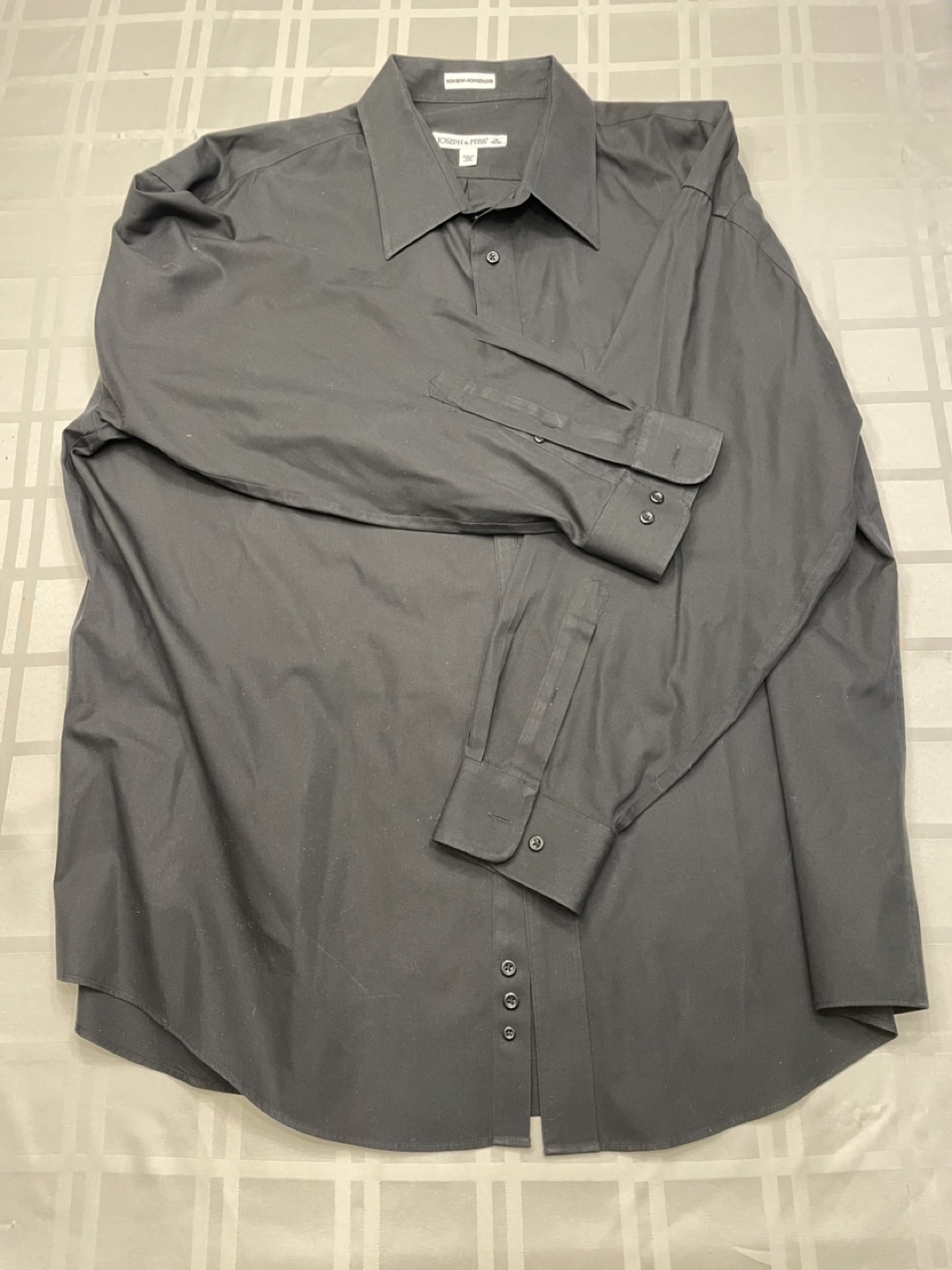 Selling a Joseph & Feiss dress shirt in black. It's a size 19 with a 34/35 length. The shirt is made of 100% cotton and is non-iron, making it super easy to care for!
