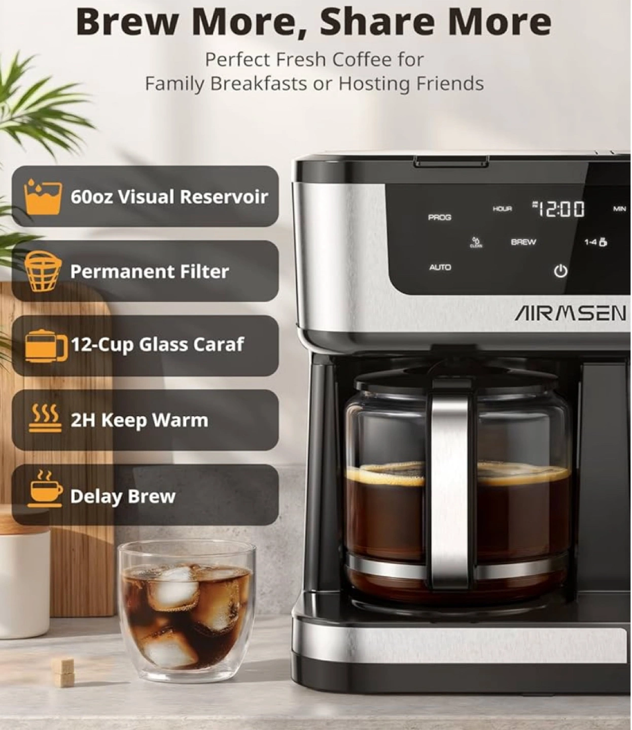 Brew more and share more with this AIRMSEN coffee maker! It's perfect for family breakfasts or hosting friends.