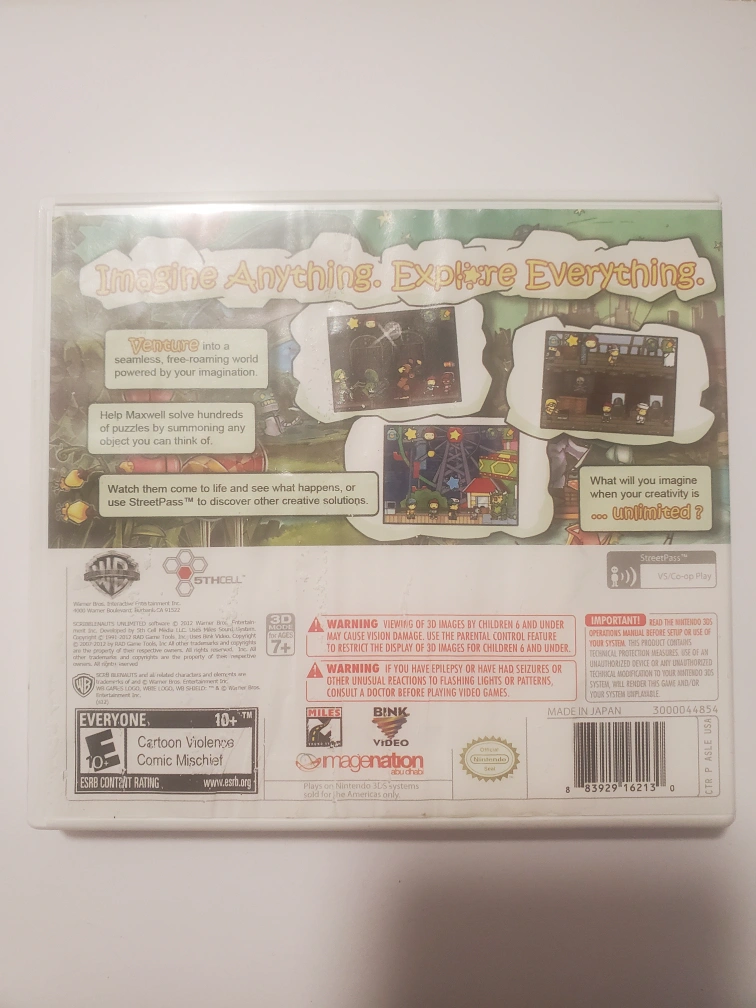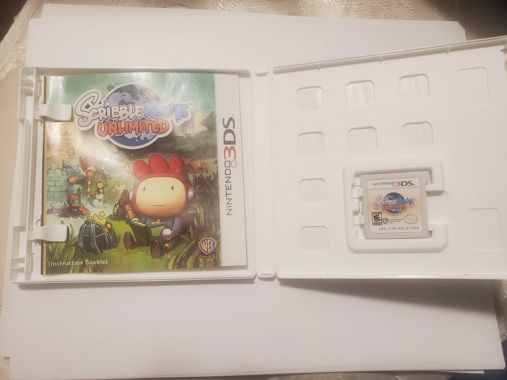 Scribblenauts Unlimited for the 3DS! Comes in box with manual, box has minimal scratching/warping on the back cover.