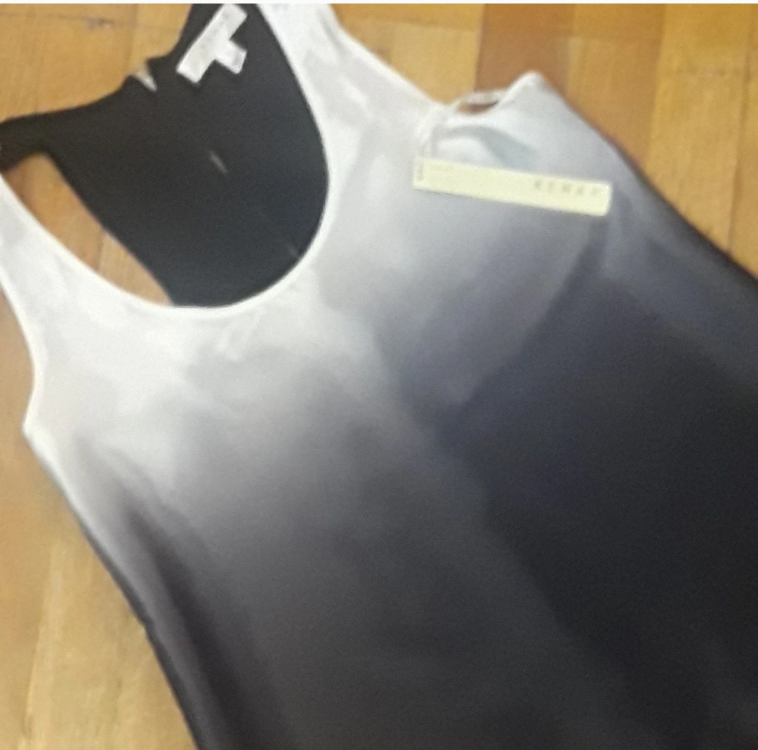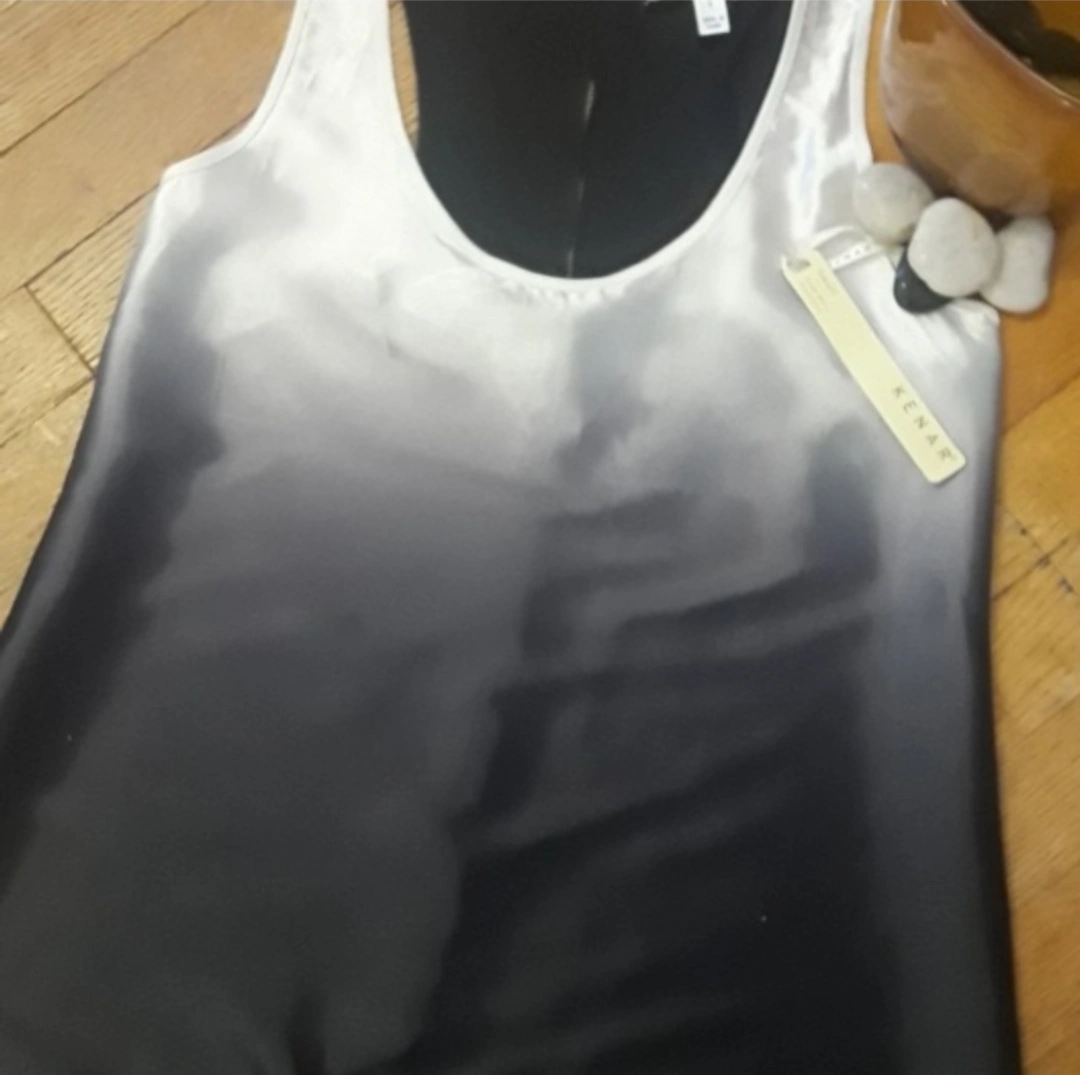 KENAR Black/White Racerback Hi-Low Satin Top S- New with Tagsš